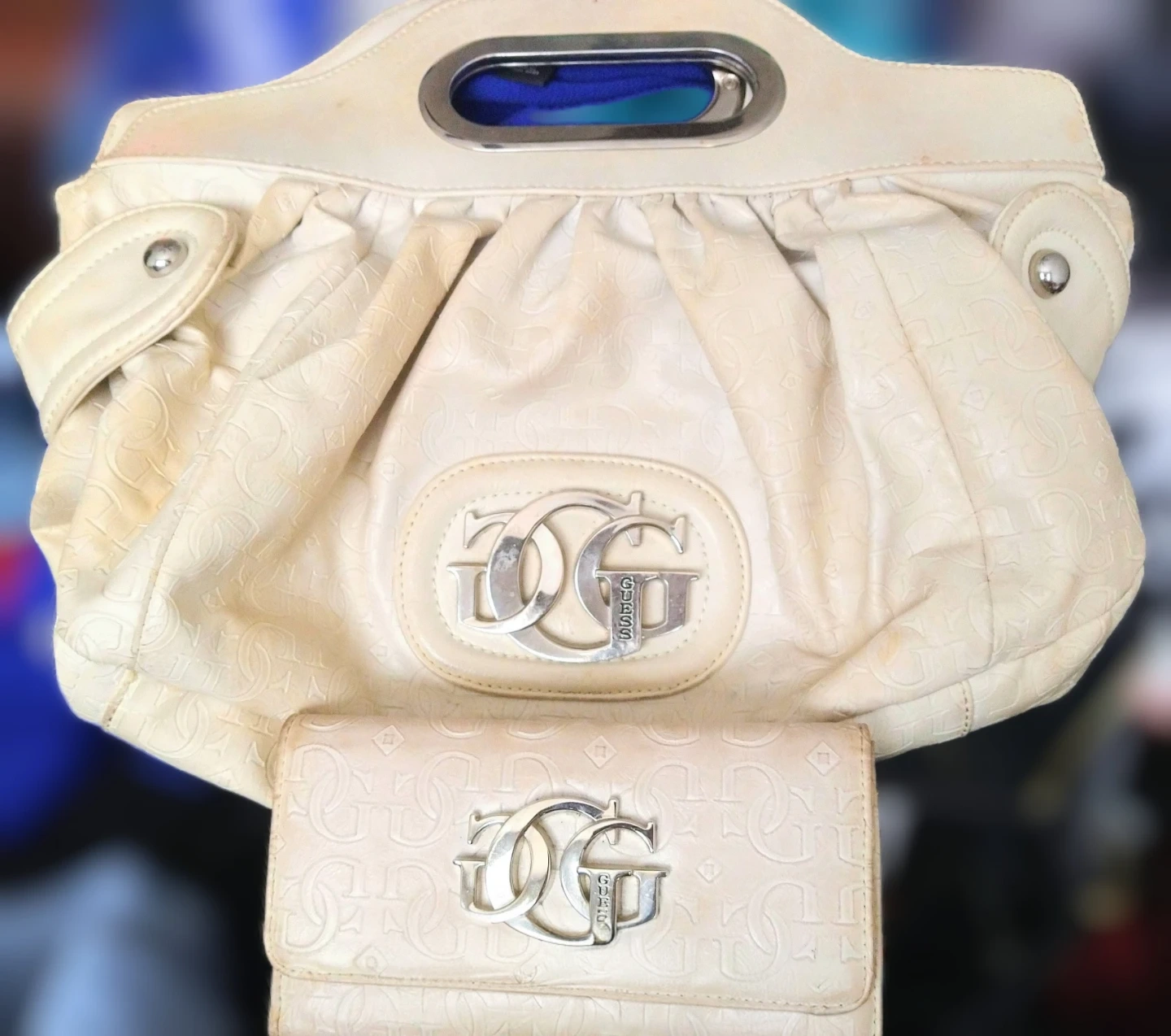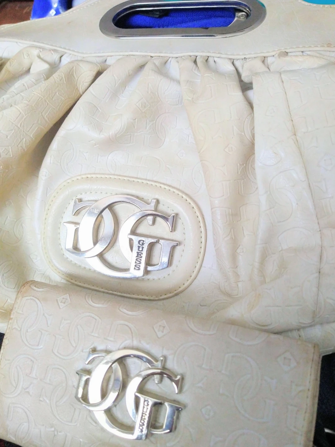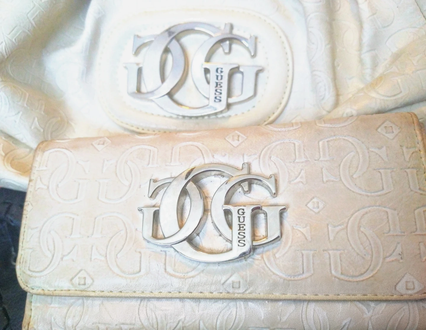 Vintage Y2K White Guess Medium handbag W/ Matching Wallet