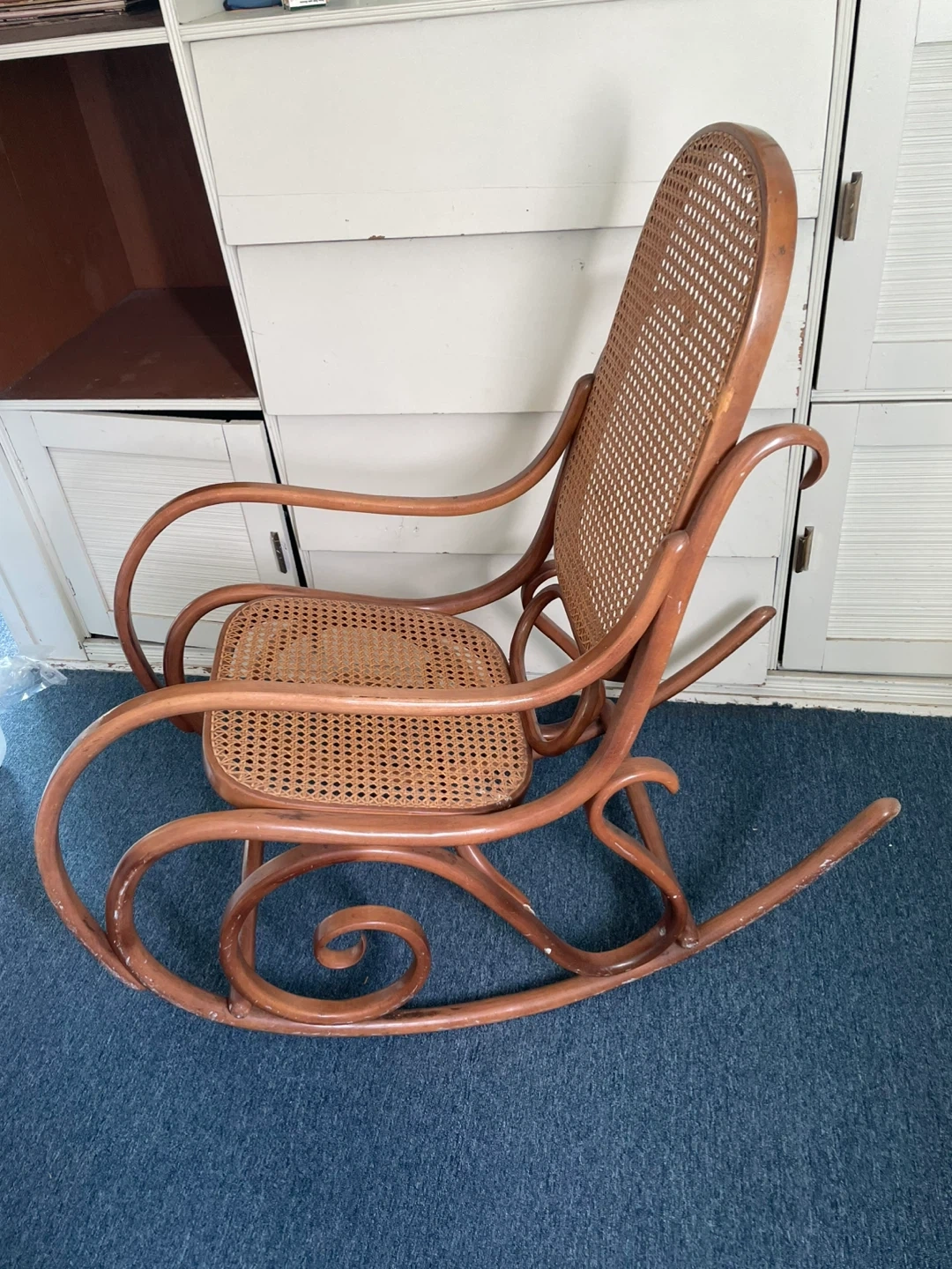Selling a vintage bentwood rocking chair! It has a beautiful woven seat and back. It's perfect for relaxing and would look great in any room
