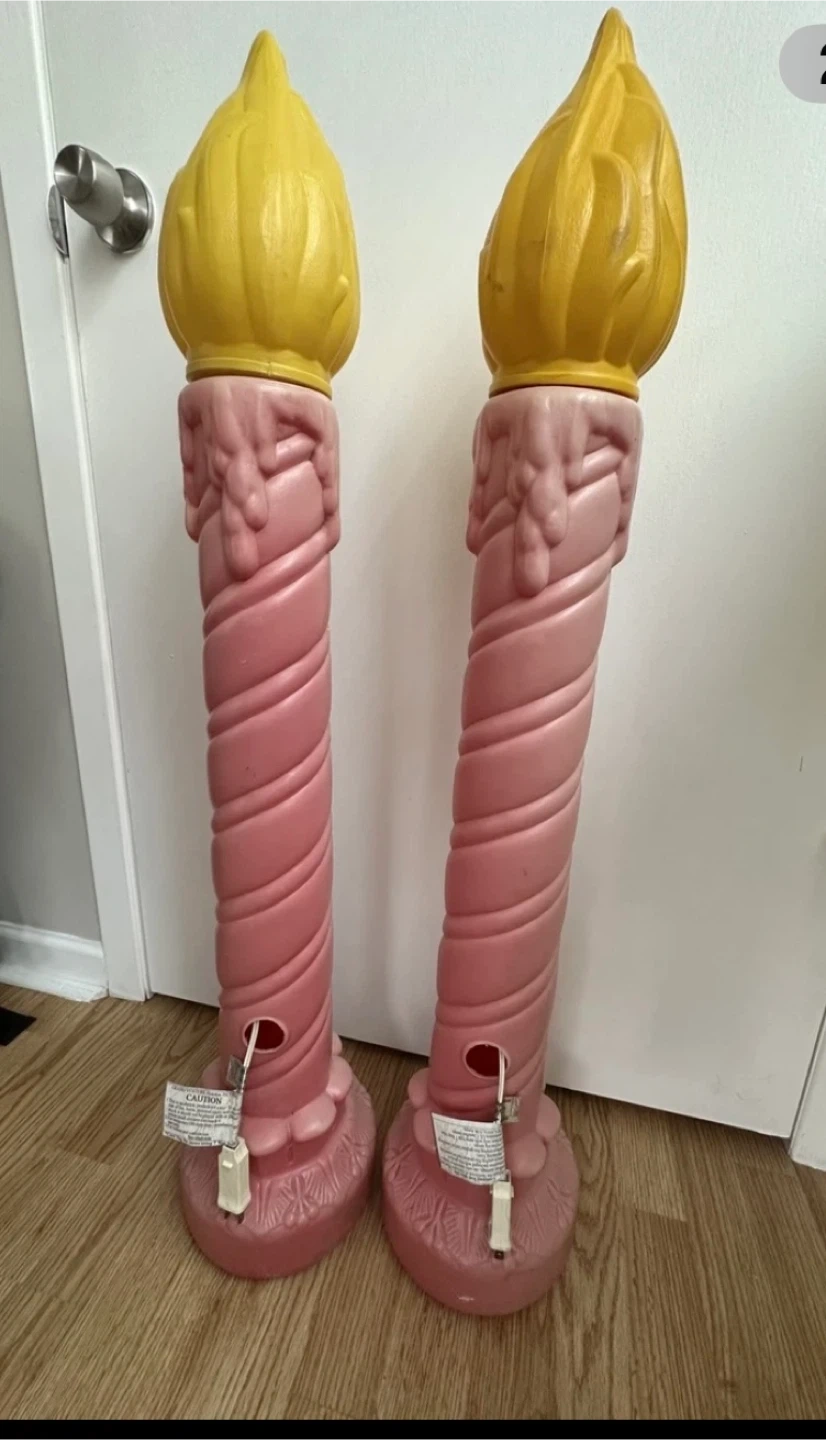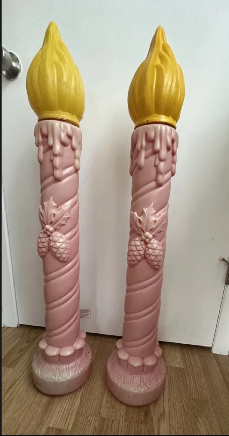 65Pair of vintage blow mold Christmas candles in working order. Approximately 18 inches tall