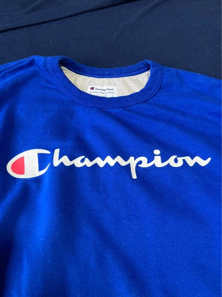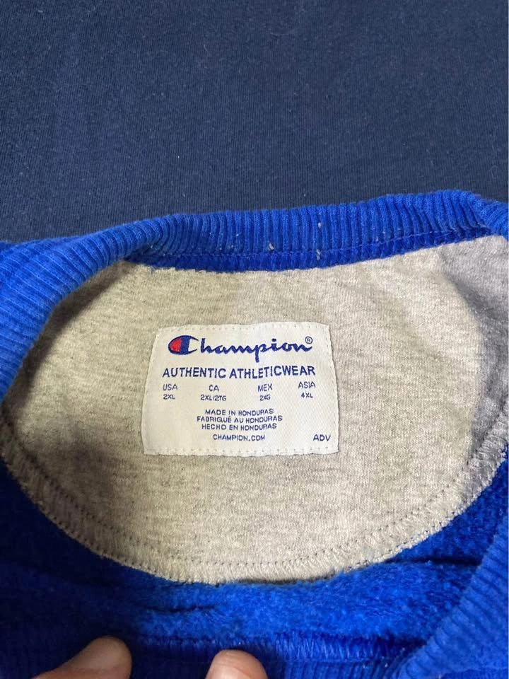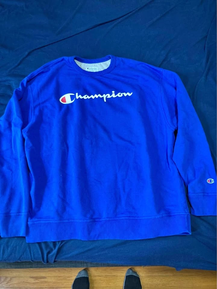 65champion blue crew neck sweater size 2XL. Let me know if you're interested!