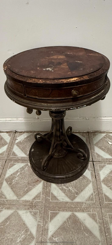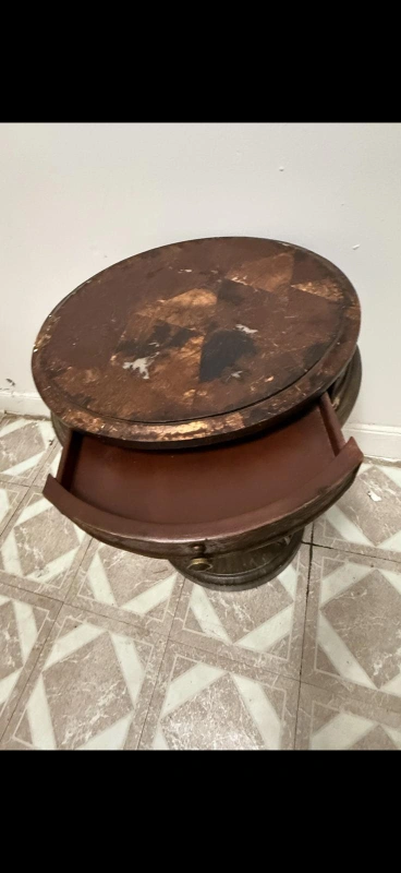 Selling a charming vintage round side table! It features a unique design with a round top and a small drawer, perfect for adding character to any room. The table has a rustic wooden finish, giving it a warm and inviting feel. It's a great piece to use as a bedside table or as an accent piece in your living room. Radius: 8.5in. Diameter: 17in. Height: 26in.