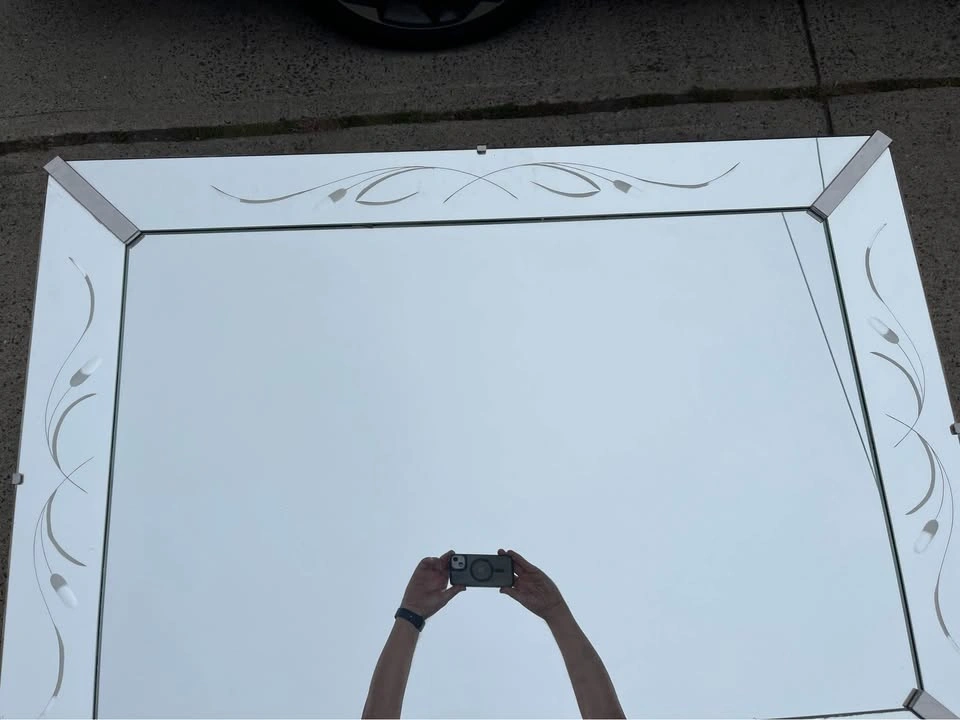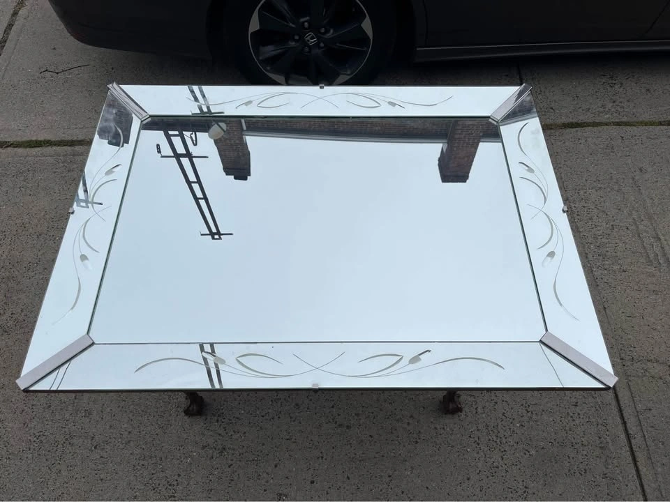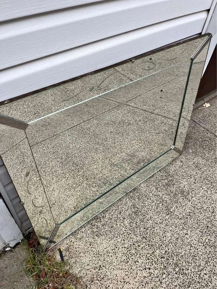 This is a vintage Venetian-style mirror with etched designs and beveled edges. This mirror was first hung in 1940’s or 50’s (not sure of exact date but that was the time period) as decorative accent in a master bedroom. Even 70-80 years later it still adds a touch of elegance and sophistication to any space. This mirror is in very good shape for its age. It’s approximately 45inx33in Cash Only Pickup in Sheepshead Bay Brooklyn