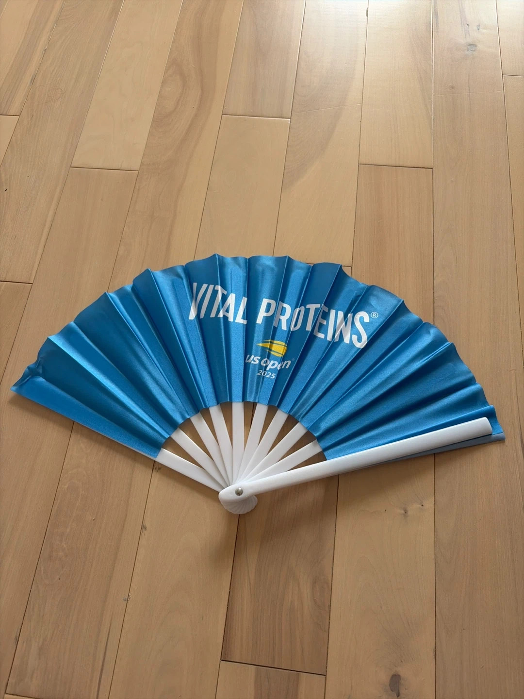 I'm giving away a Vital Proteins fan from the US Open 2025! It's a nice blue color with the Vital Proteins logo on it. Great for keeping cool!