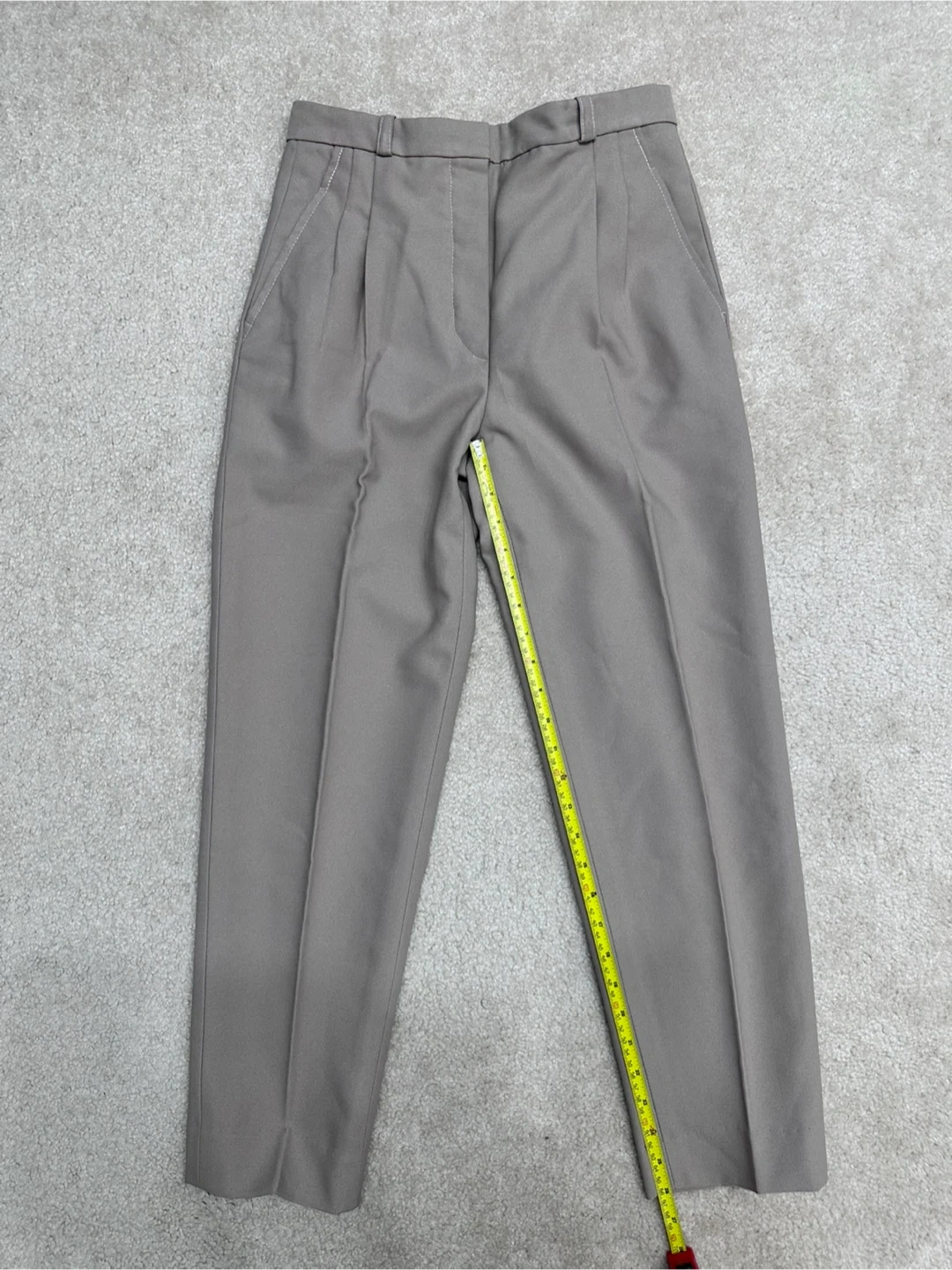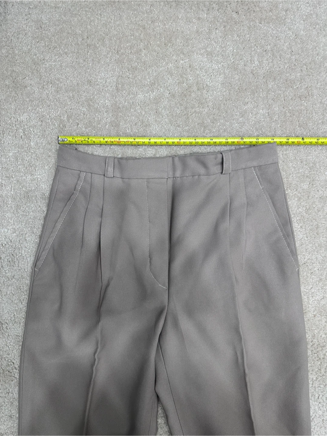 Taupe coloured trousers, perfect for any occasion! They appear to be measuring approximately 28 inches across the waist. Check out the photos to see the measurements!