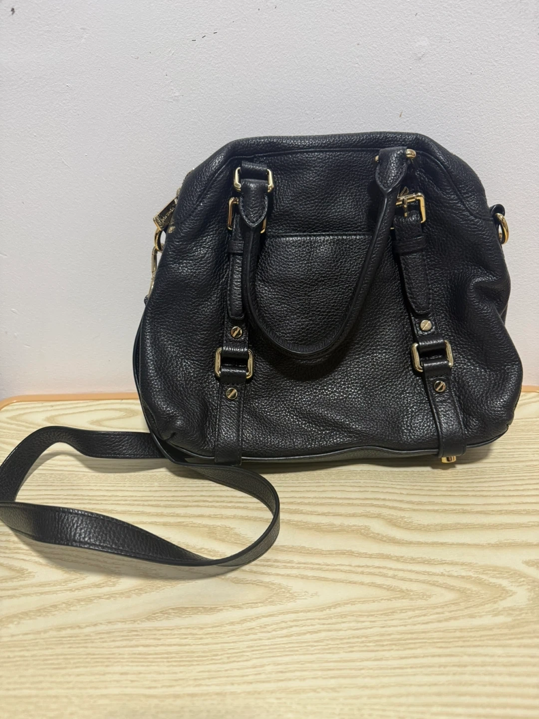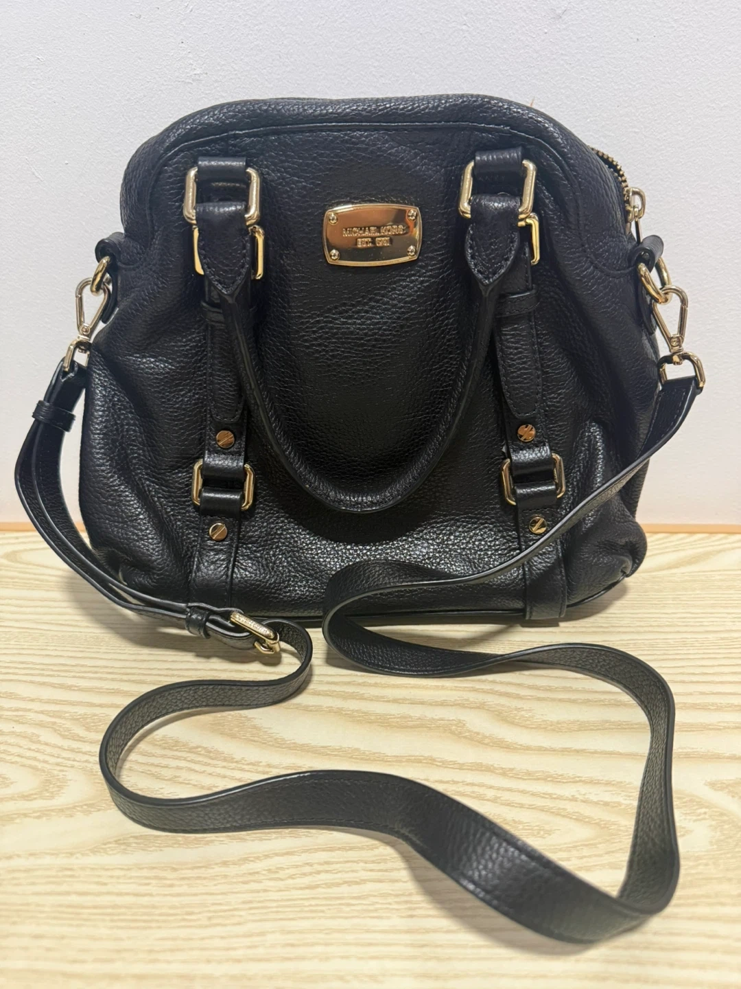 This is a Michael Kors Bedford medium bowling satchel in black.