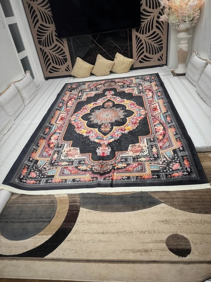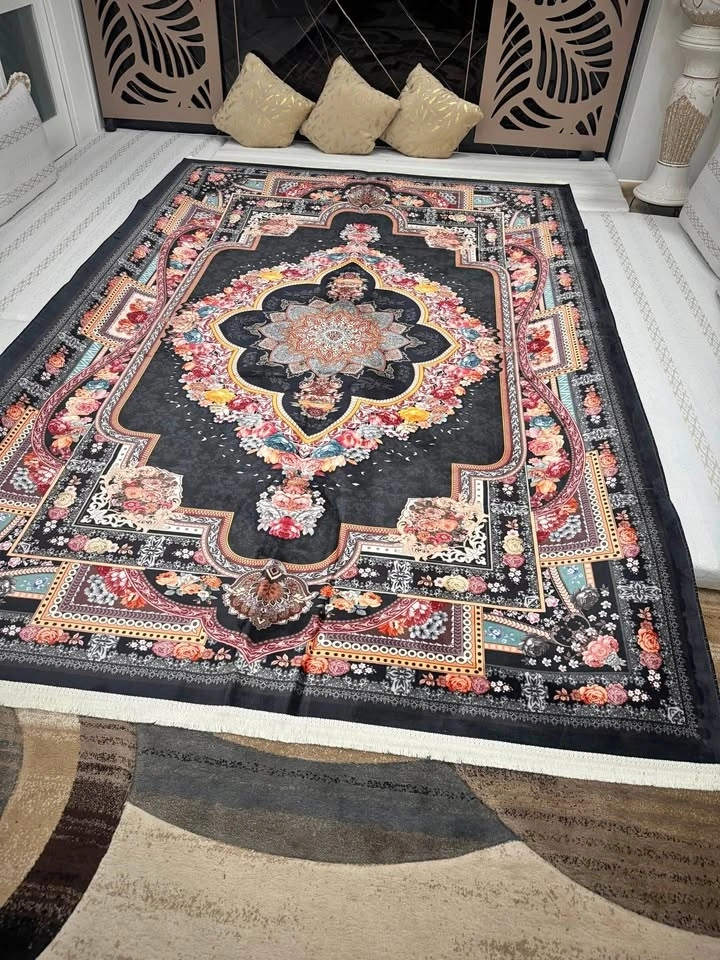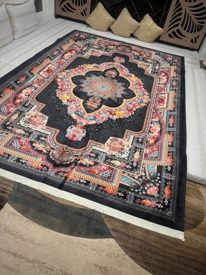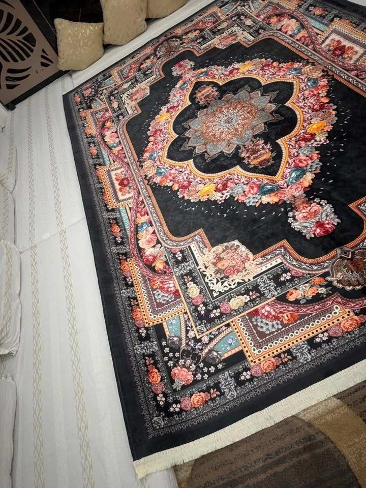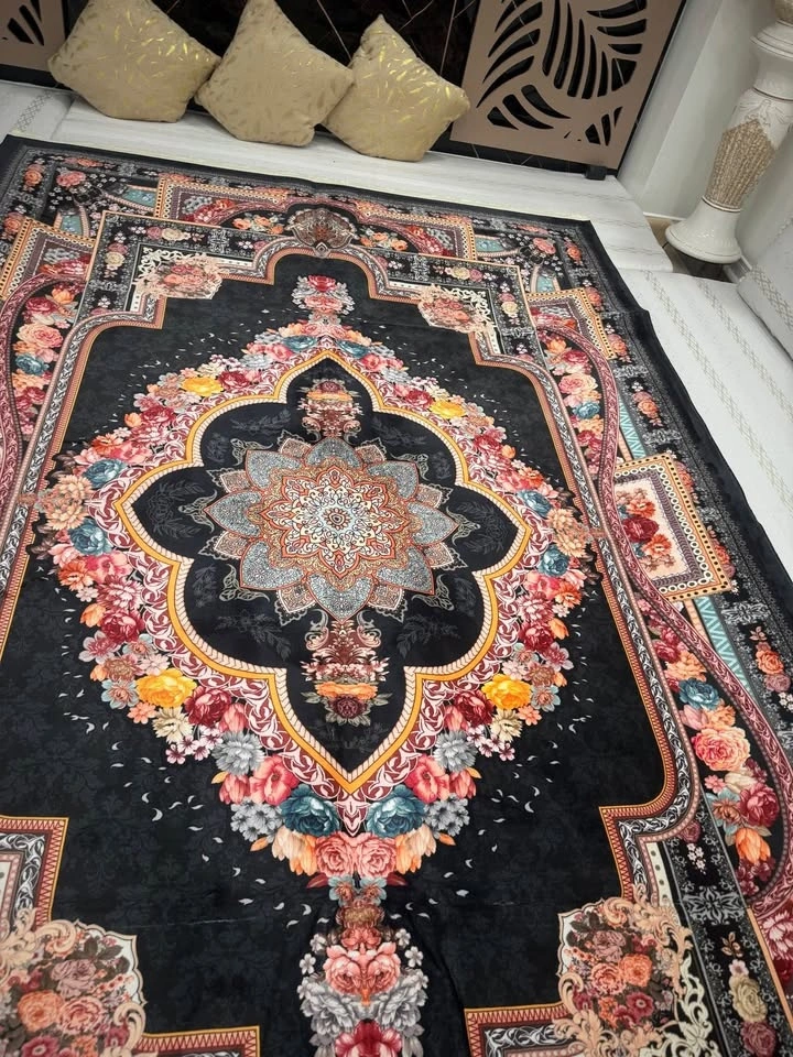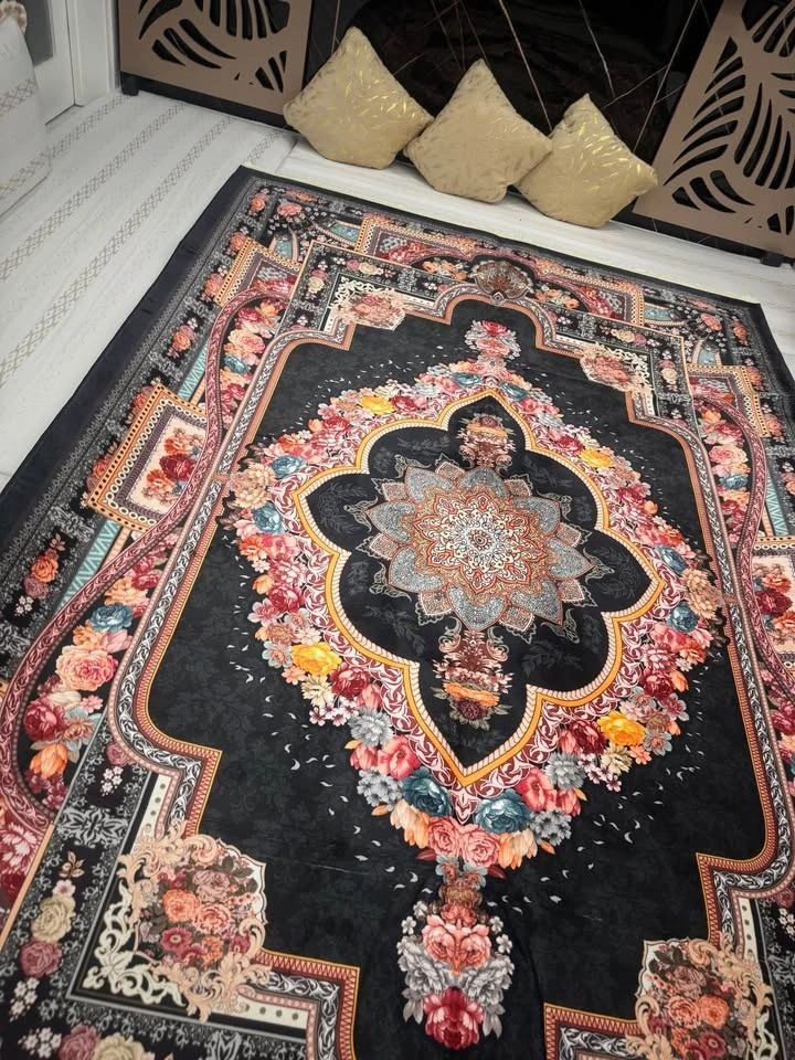 New carpet, size 7x10 feet. Black base with colorful floral print. Digital 3D print. Cotton backing. Machine washable. Pick up on cash. Located near Red Cedar Crescent, Brampton. Only two pieces left in this black design.