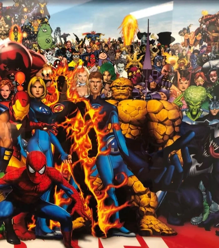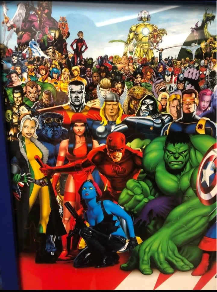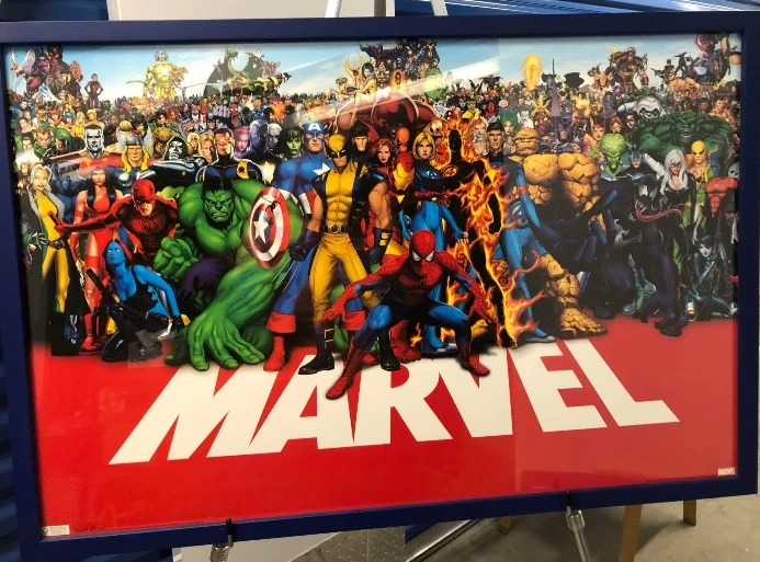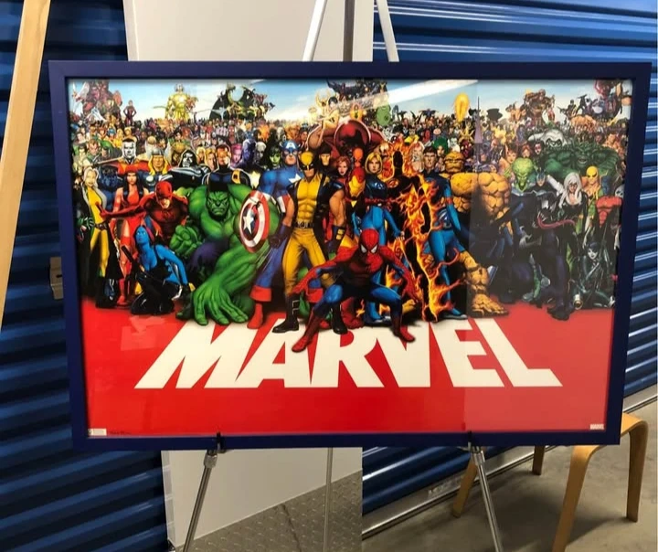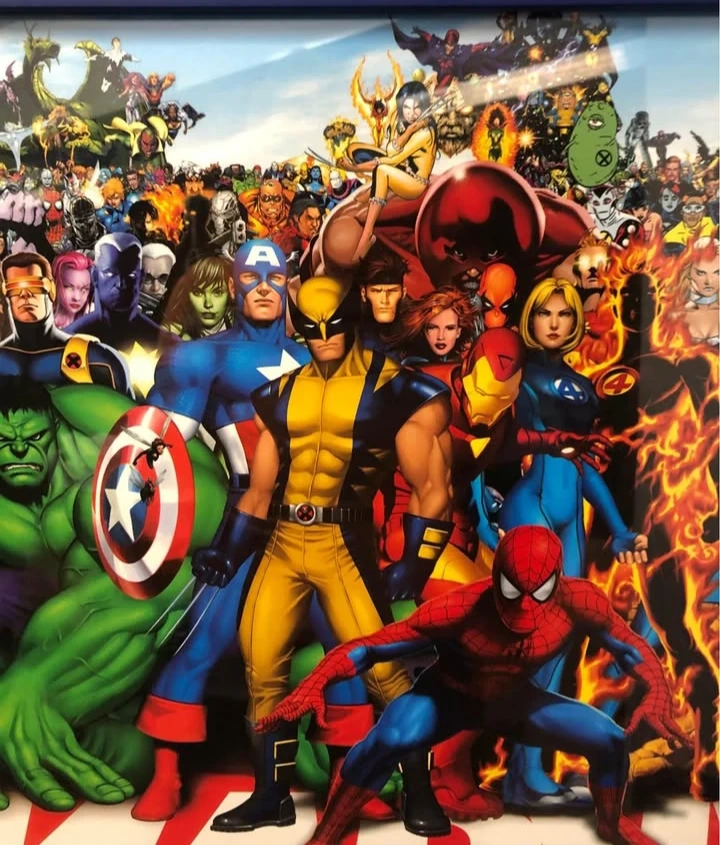 This framed poster showcases a vibrant collection of Marvel's most iconic heroes. Published and distributed by Trends International. It's a fantastic piece for any Marvel fan's collection!