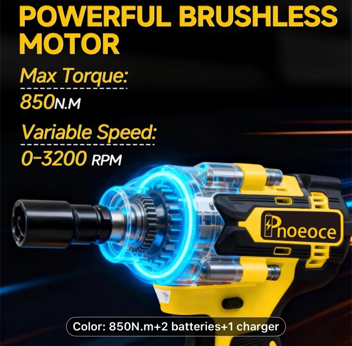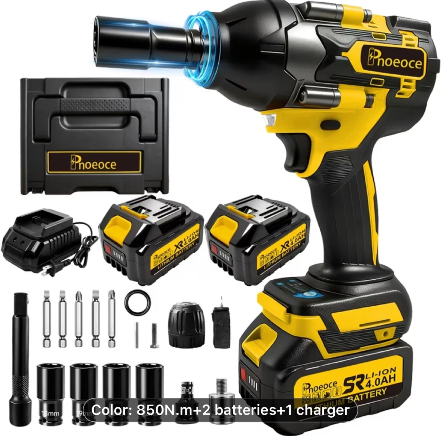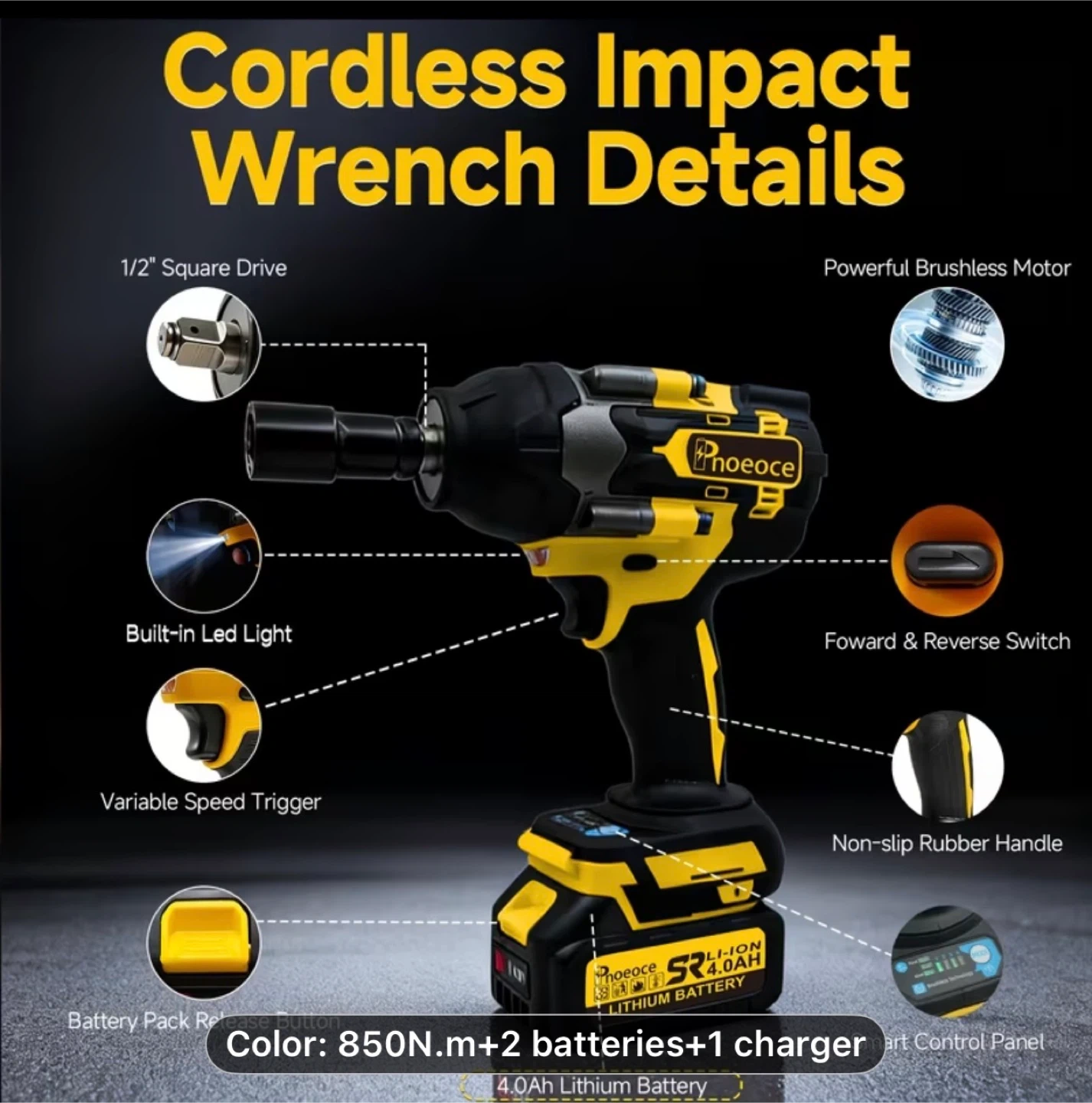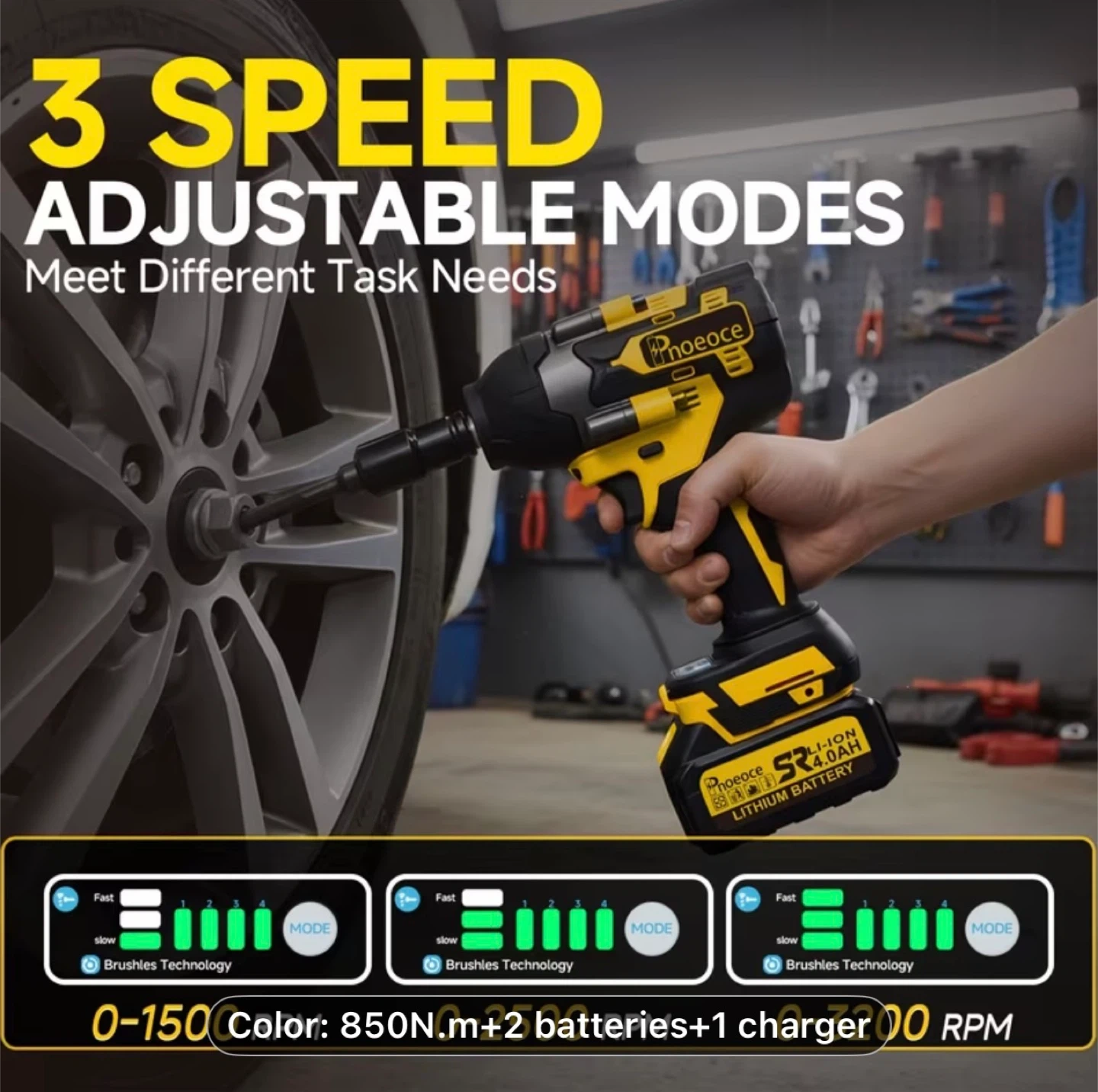 1/2" 20V Brushless Cordless Impact Wrench Kit, 850N.M High Torque 3200RPM 3-Speed, 2×4.0AH Batteries & Fast Charger, LED Dashboard & Heat Vents, Pro-Grade for Truck Tires, Heavy Machinery & Auto Repair, Mechanic Must-Have, Perfect Gift for Men &