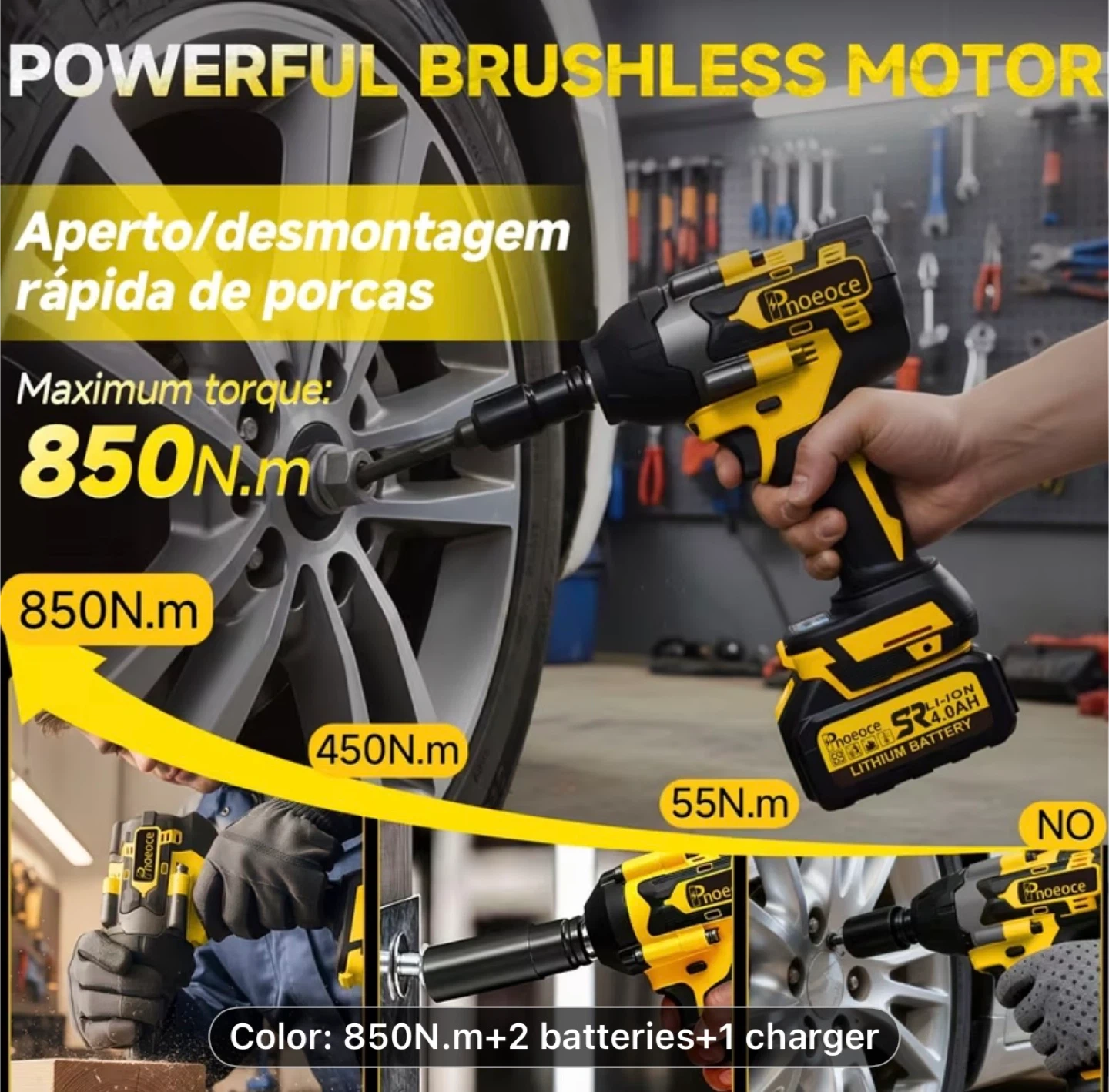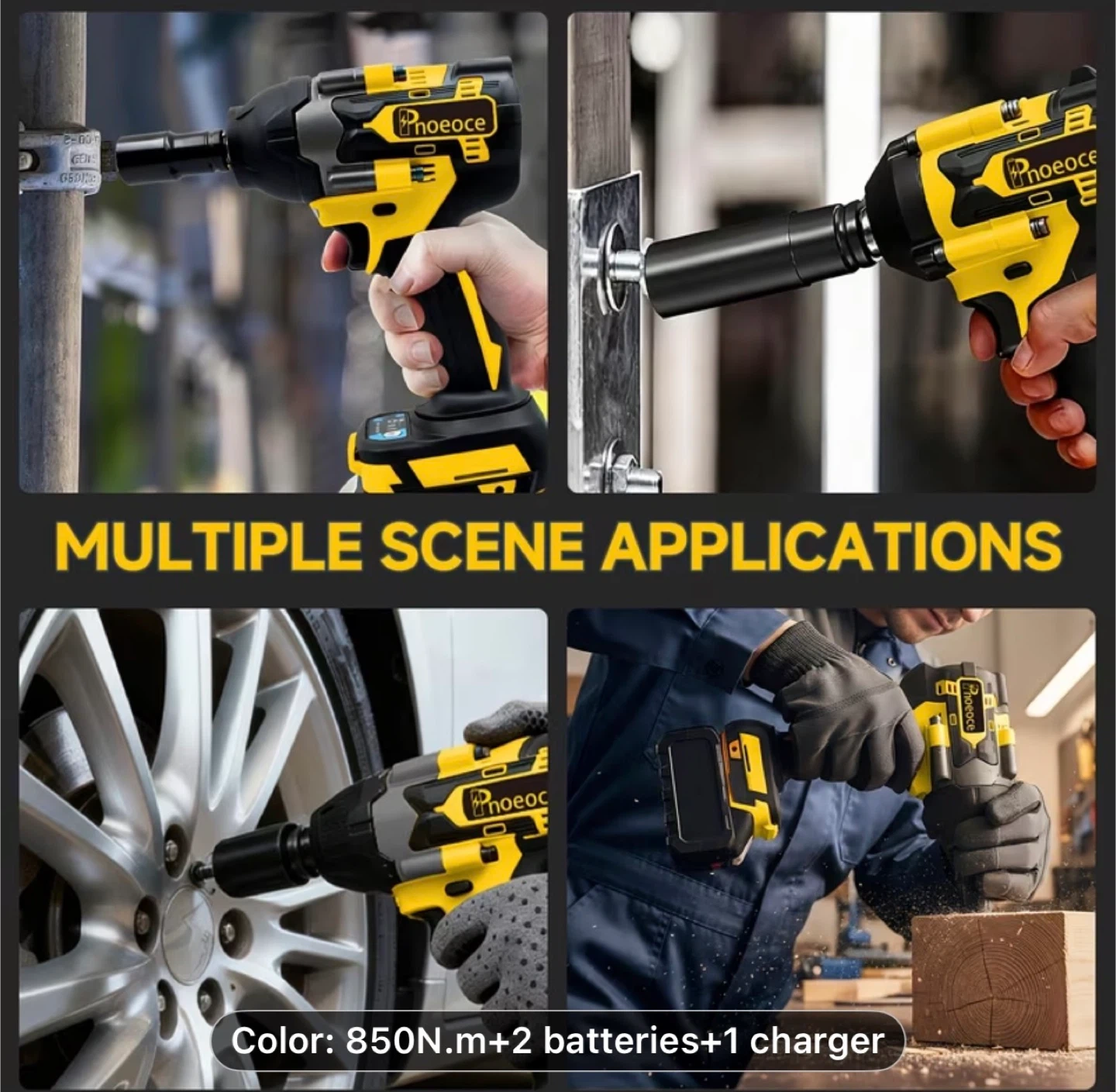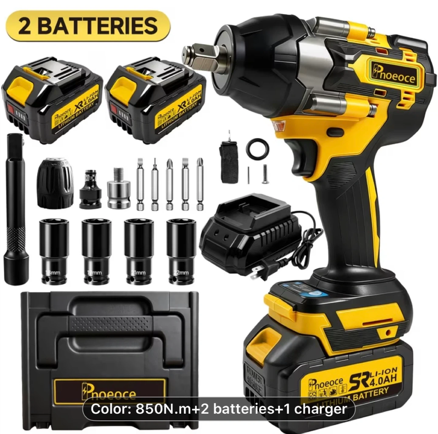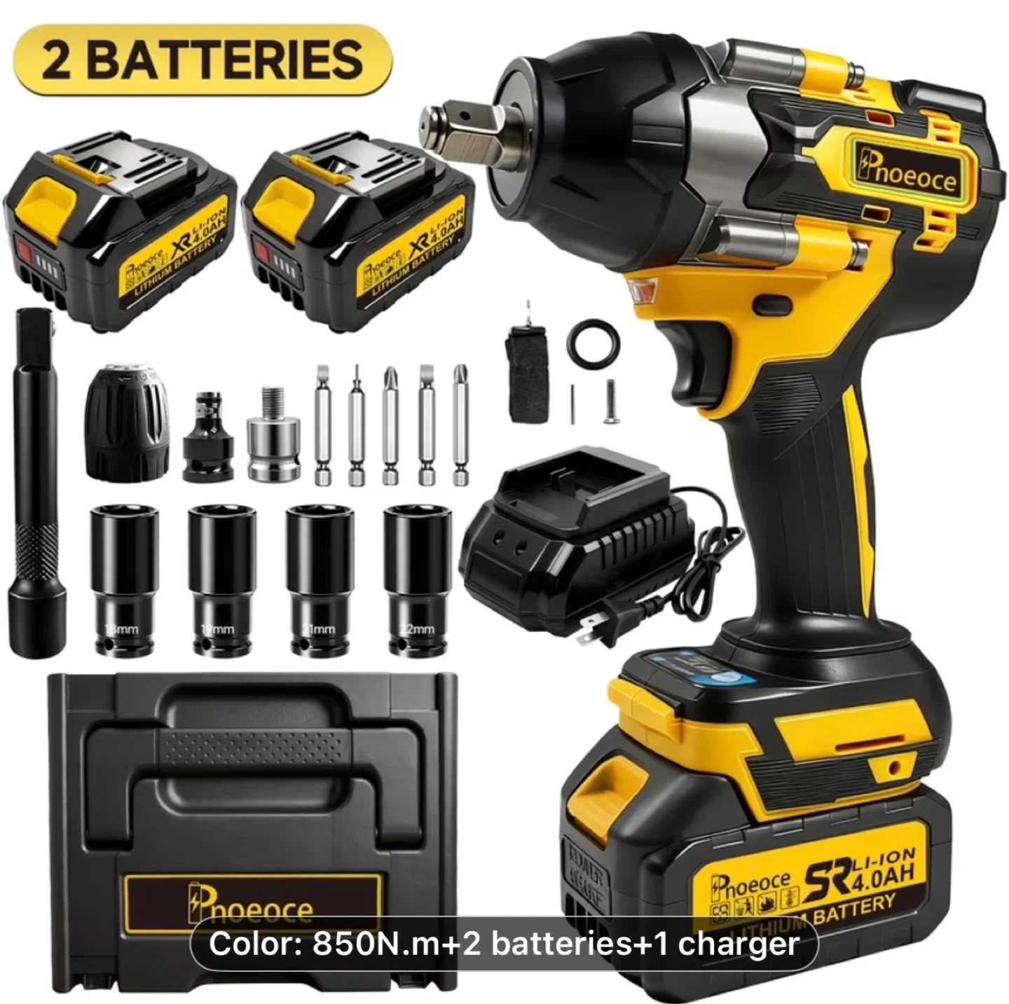 1/2" 20V Brushless Cordless Impact Wrench Kit, 850N.M