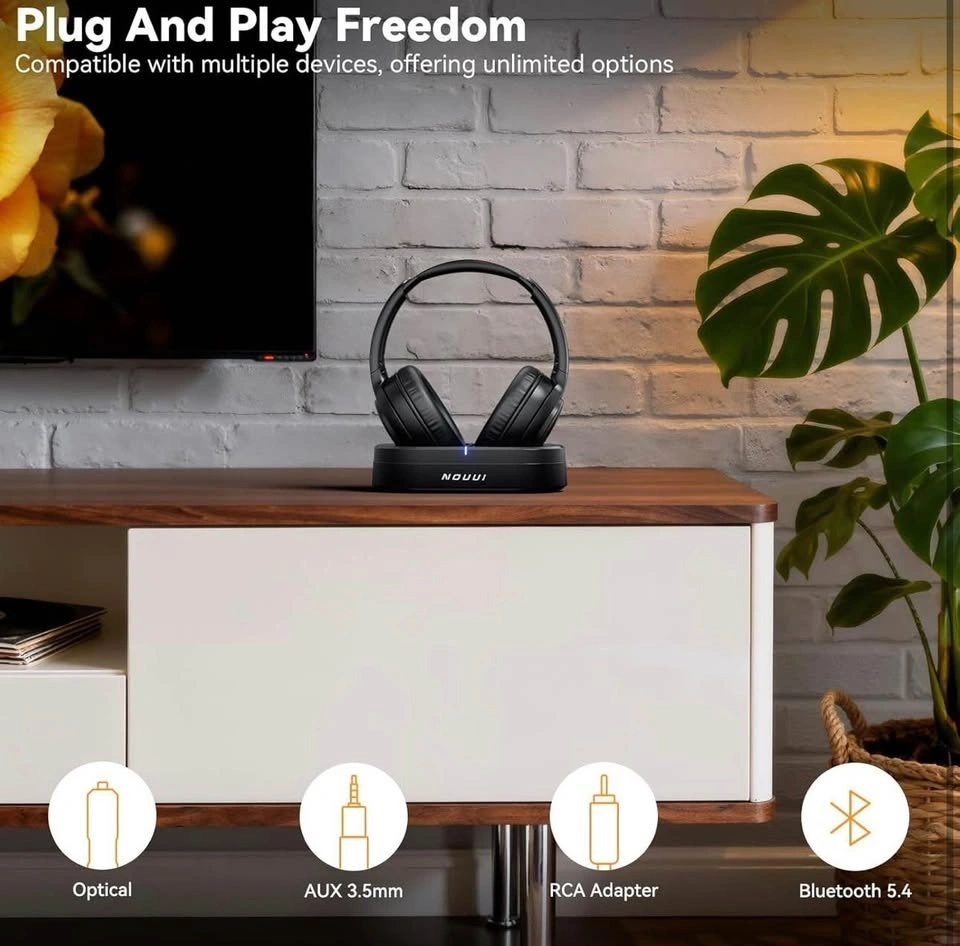 Wireless Headphones for TV Watching, TV Headphones Wireless for Seniors with Transmitter Charging Base, No Delay Bluetooth Headset for Hard of Hearing, Plug and Play, Gifts for Elderly & Parents