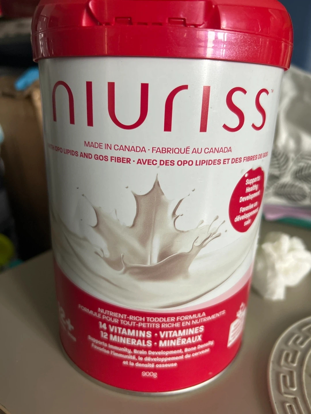 Niuriss nutrient-rich toddler formula is made in Canada. It contains 14 vitamins and 12 minerals. This formula supports healthy development and is good for toddlers aged 2+.