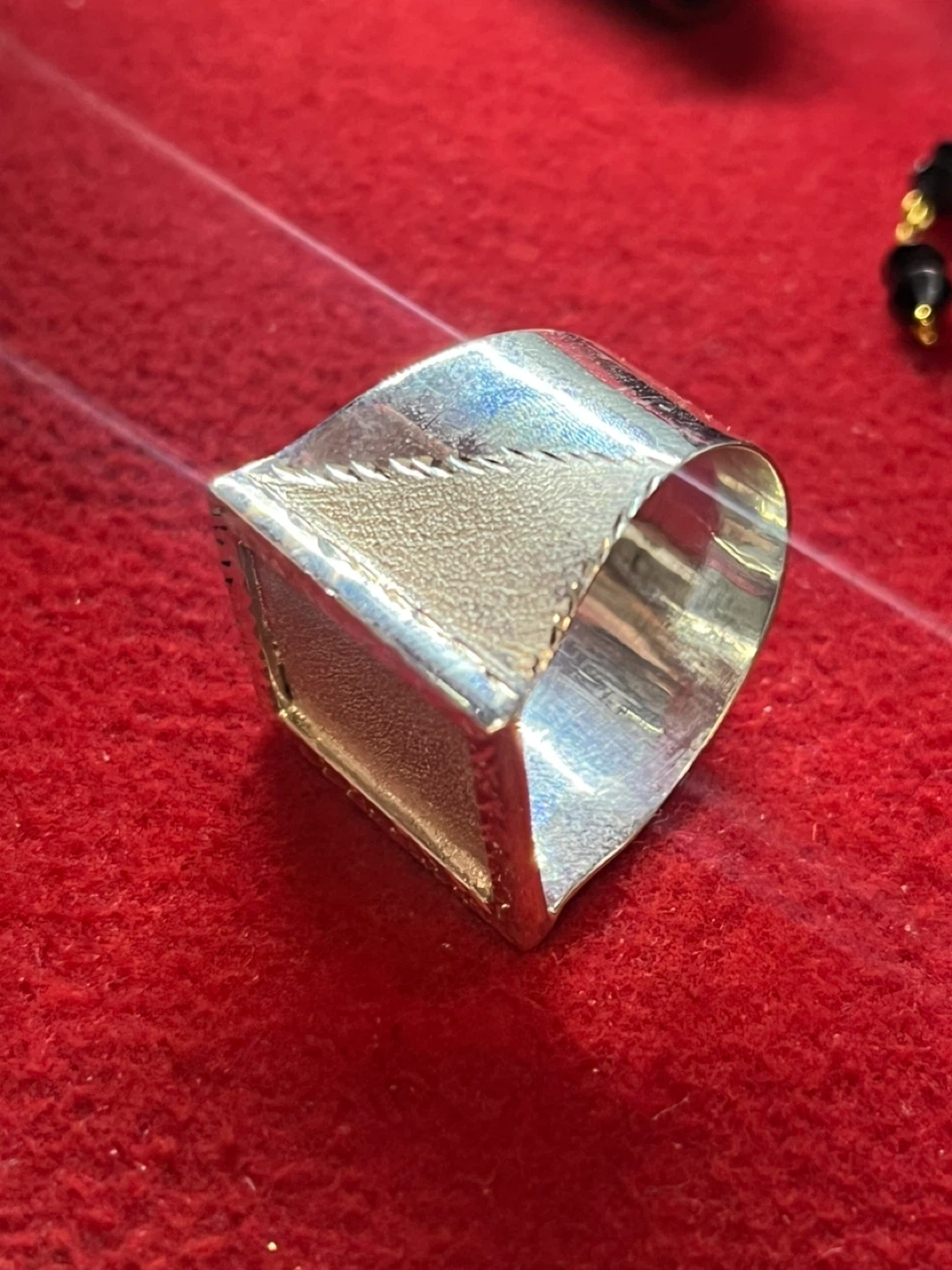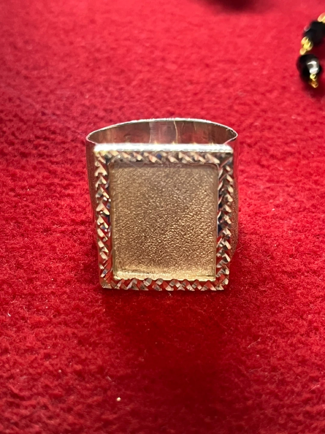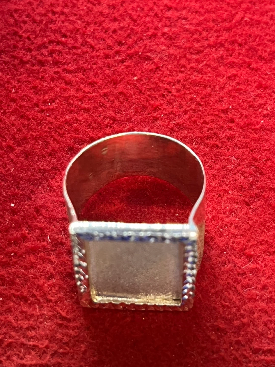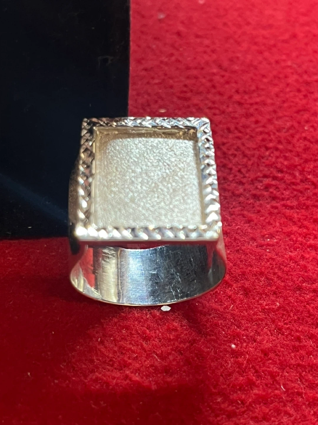 This 925 Table Top sterling silver ring features a textured band with a square-shaped setting. It's designed for customization.