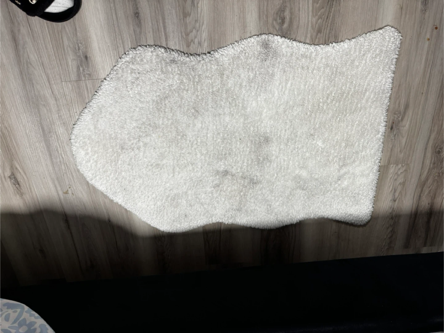 Selling a cozy white faux sheepskin rug! It's a great addition to any room, adding a touch of warmth and comfort. It's in good condition and ready to make your space feel extra inviting. $5.