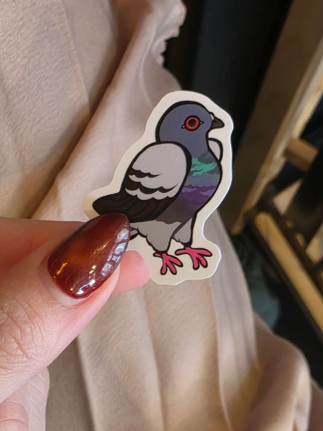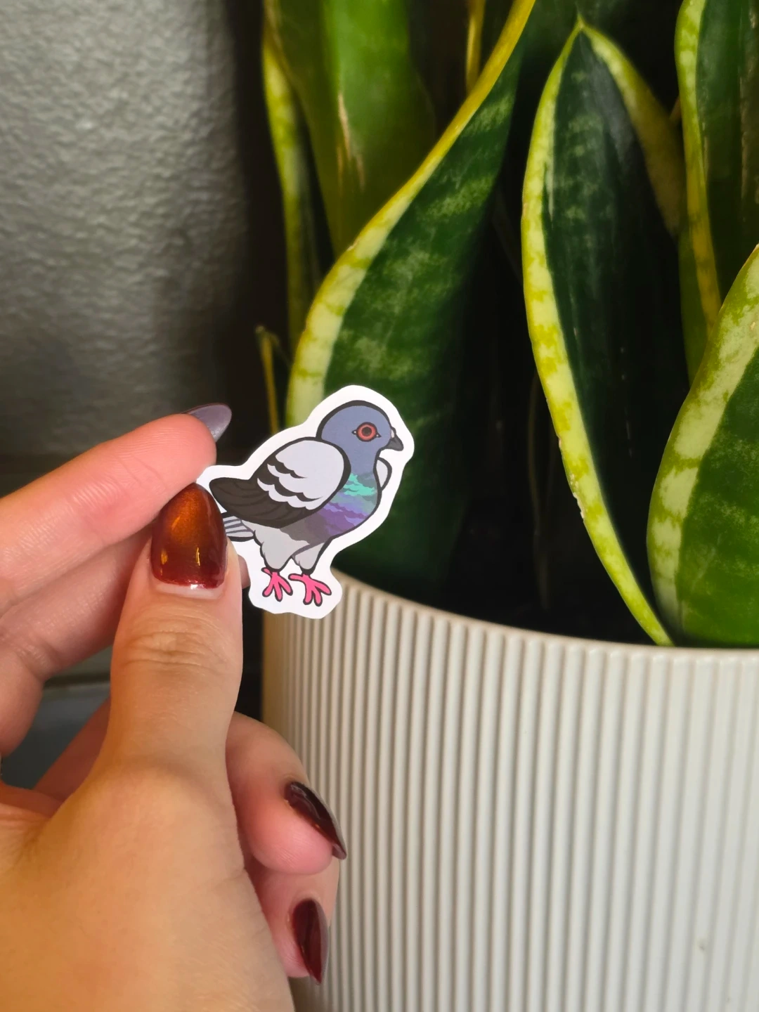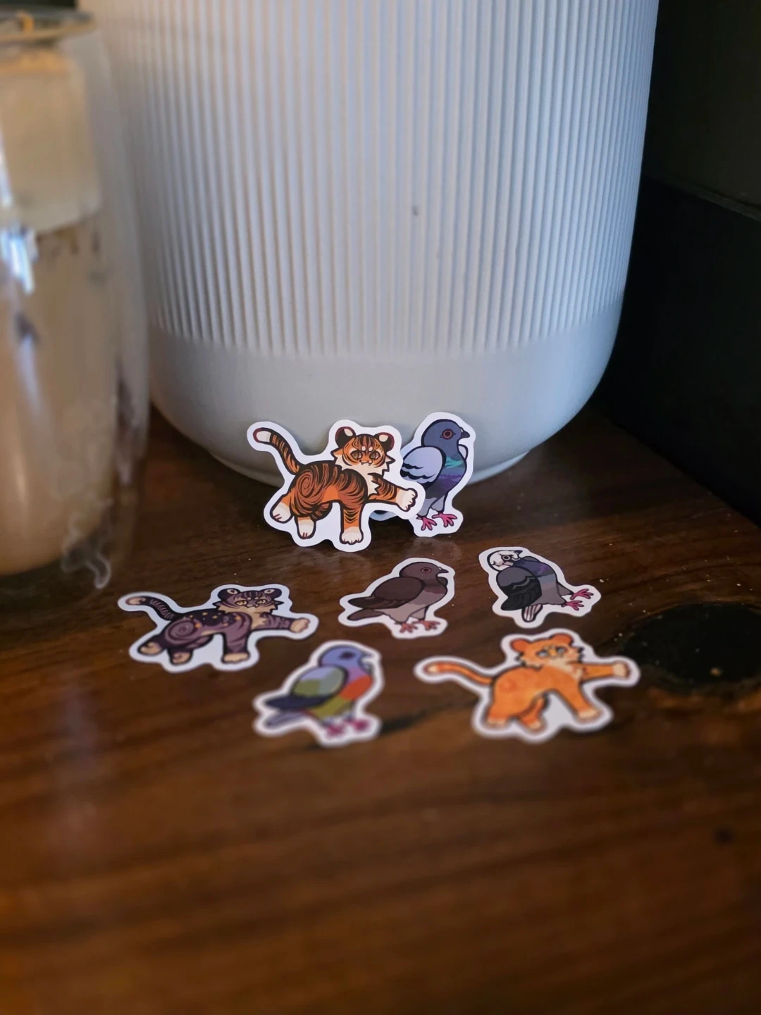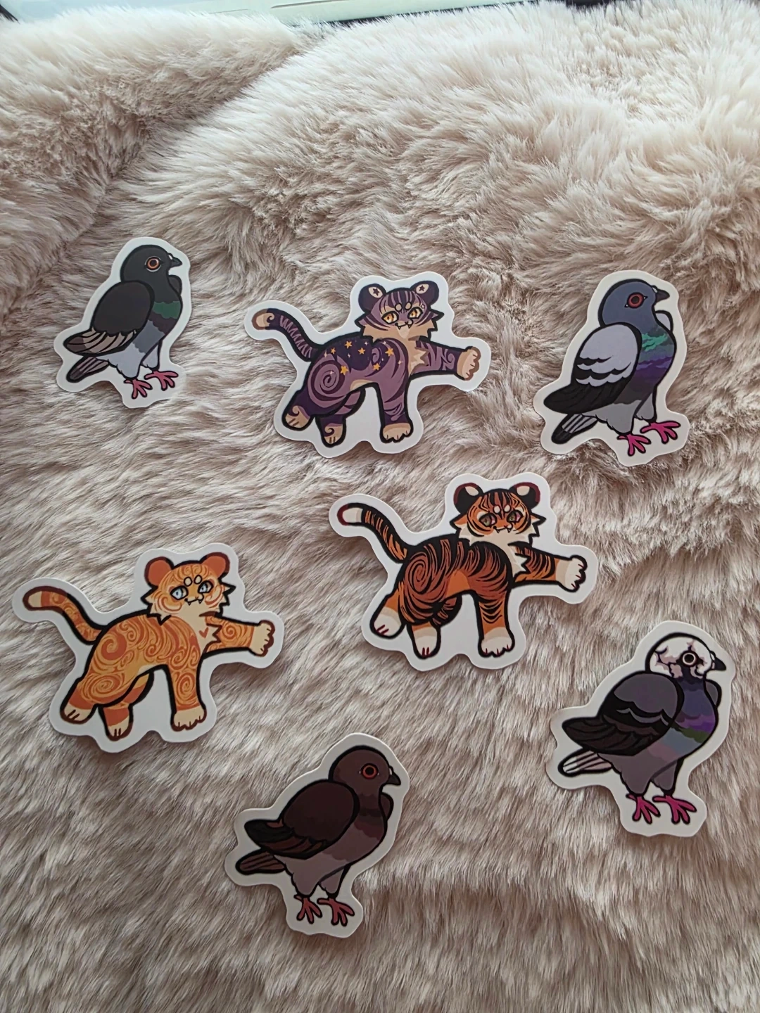 Pigeon Stickers are 1" and cat stickers are 2"