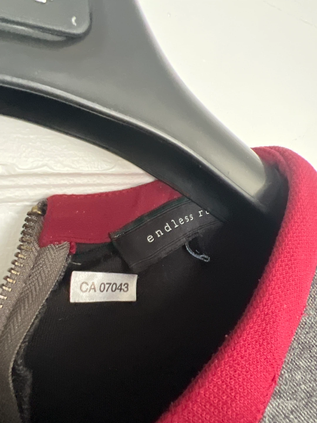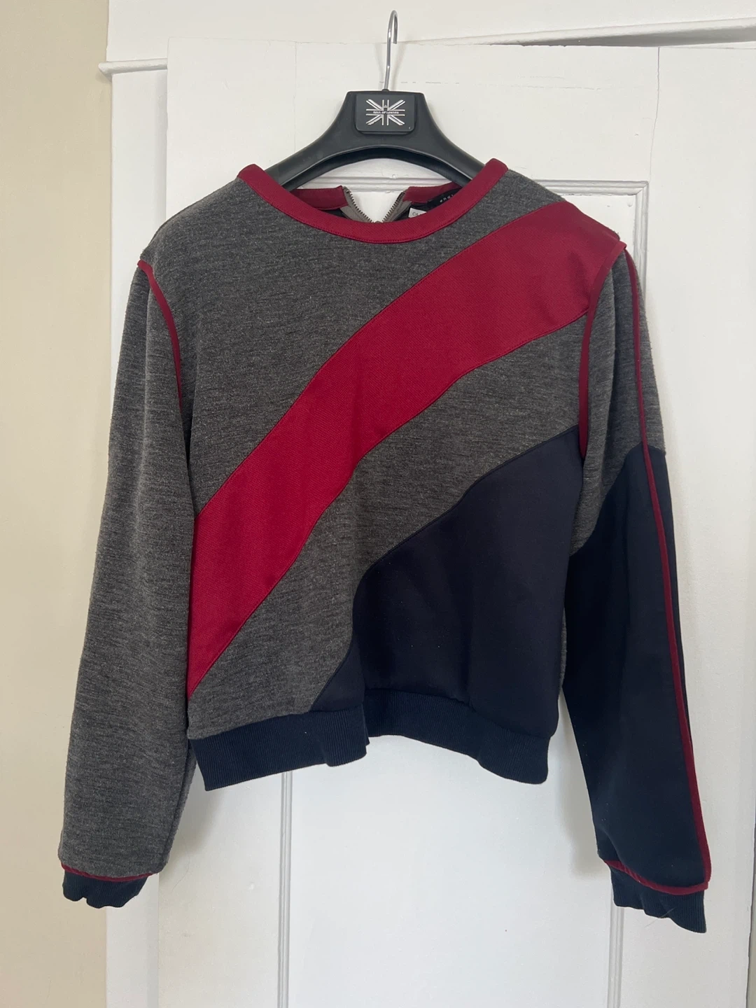 This long-sleeved sweater from Endless Rose features a colour-block design in grey, red, and navy. It's made with a blend of polyester, cotton, and spandex. Perfect for adding a pop of colour to your casual outfits!