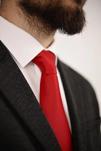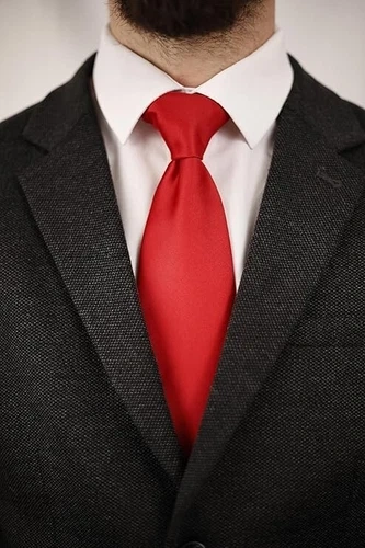 Men's Red Tie - Solid Color, Micro Pattern, 3.15" (8CM) Necktie,