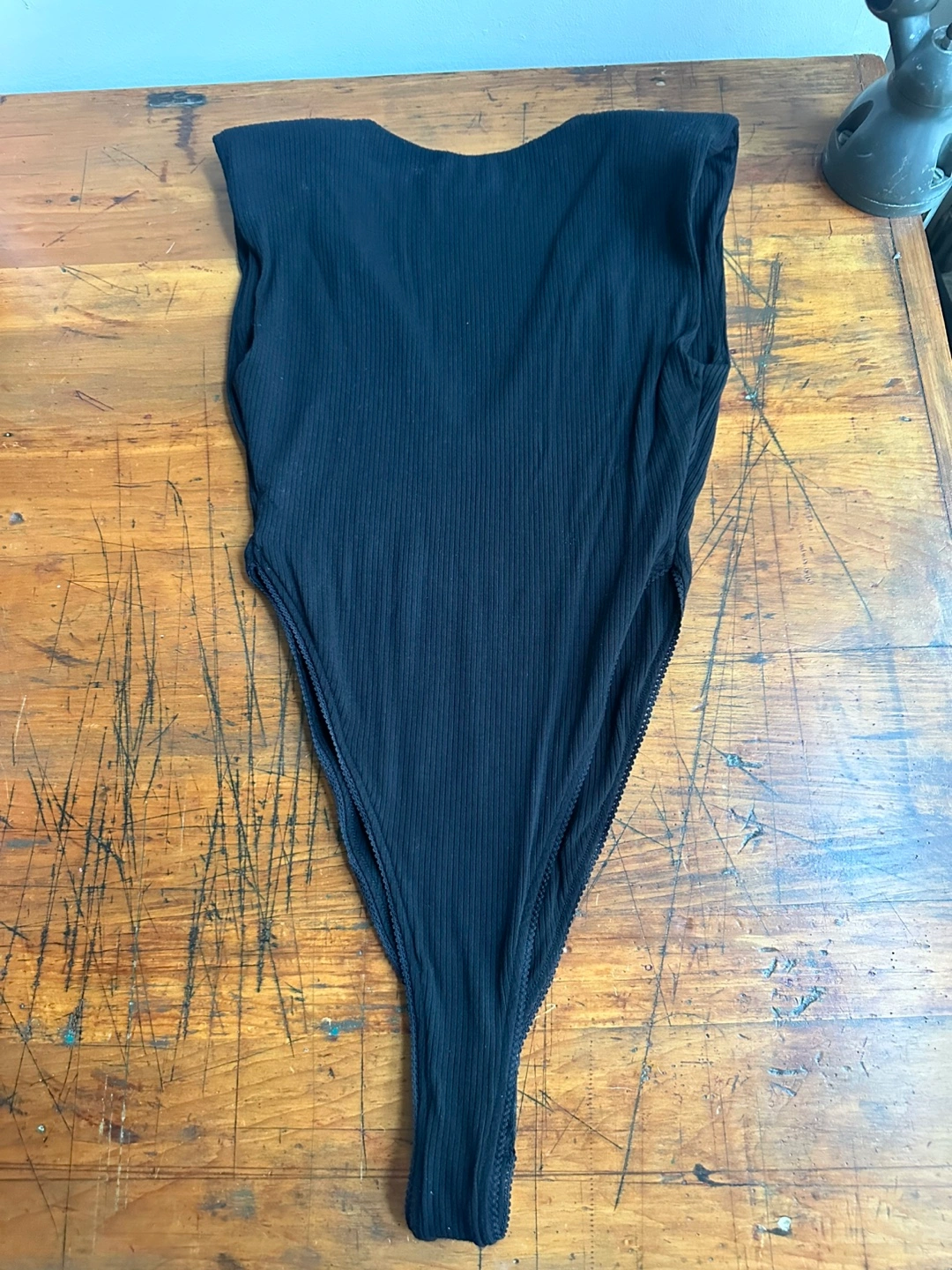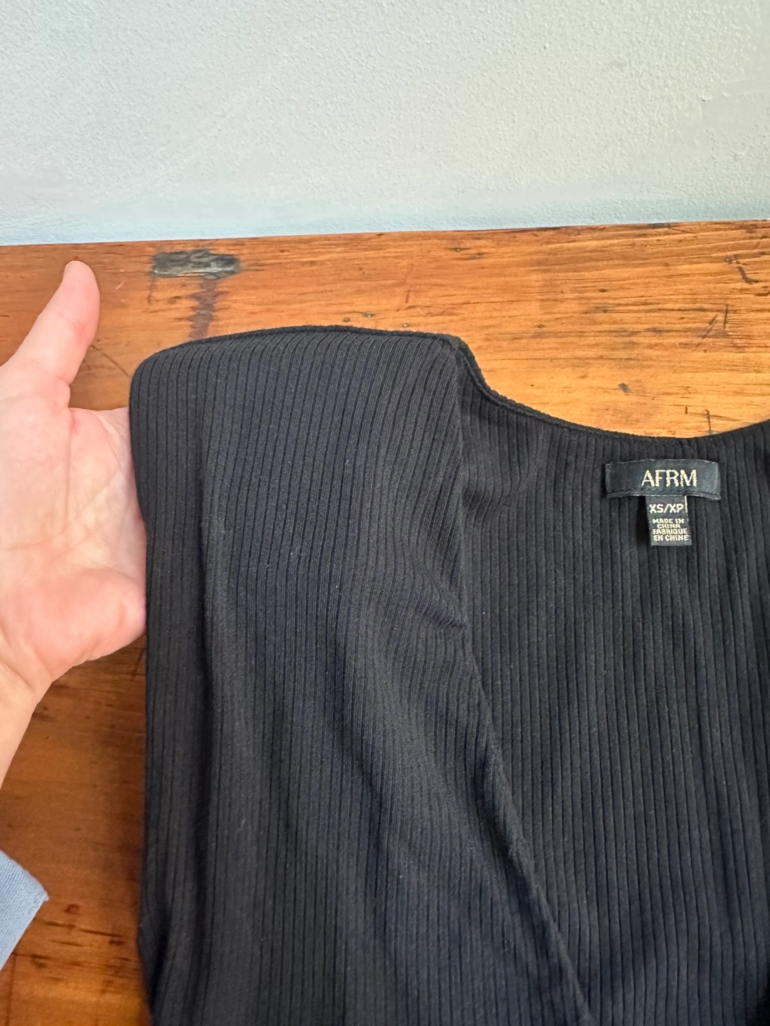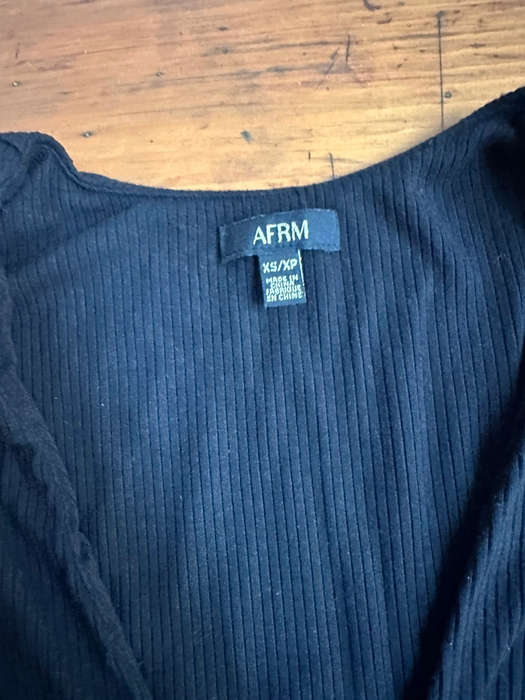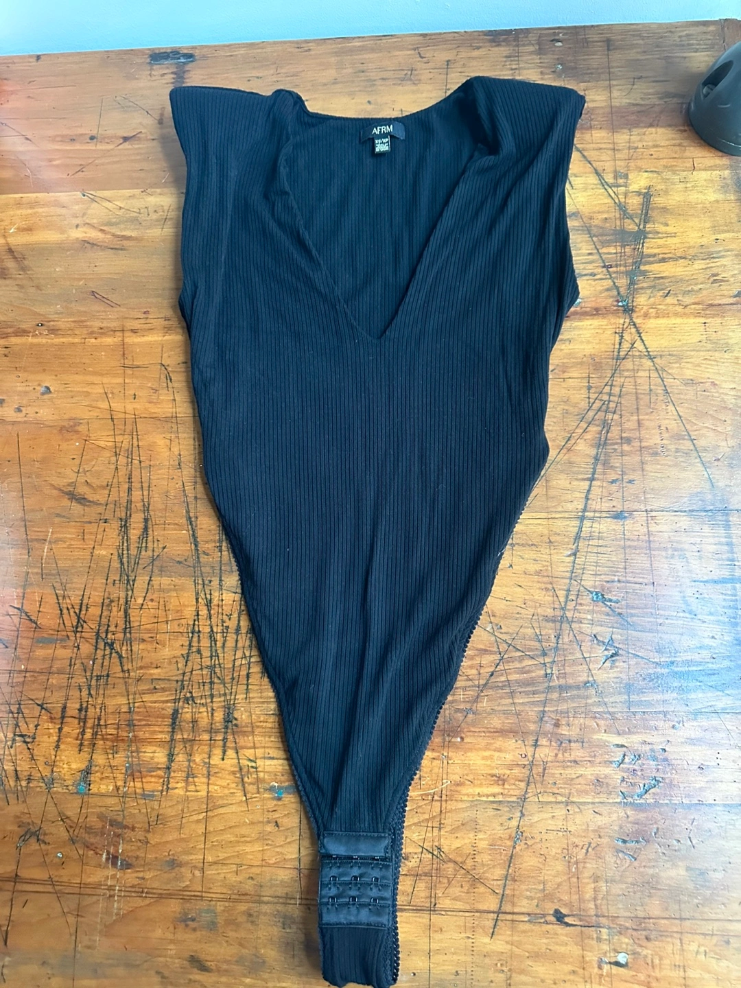 AFRM Black Ribbed V-neck Bodysuit with Shoulder Pads Size Extra Small