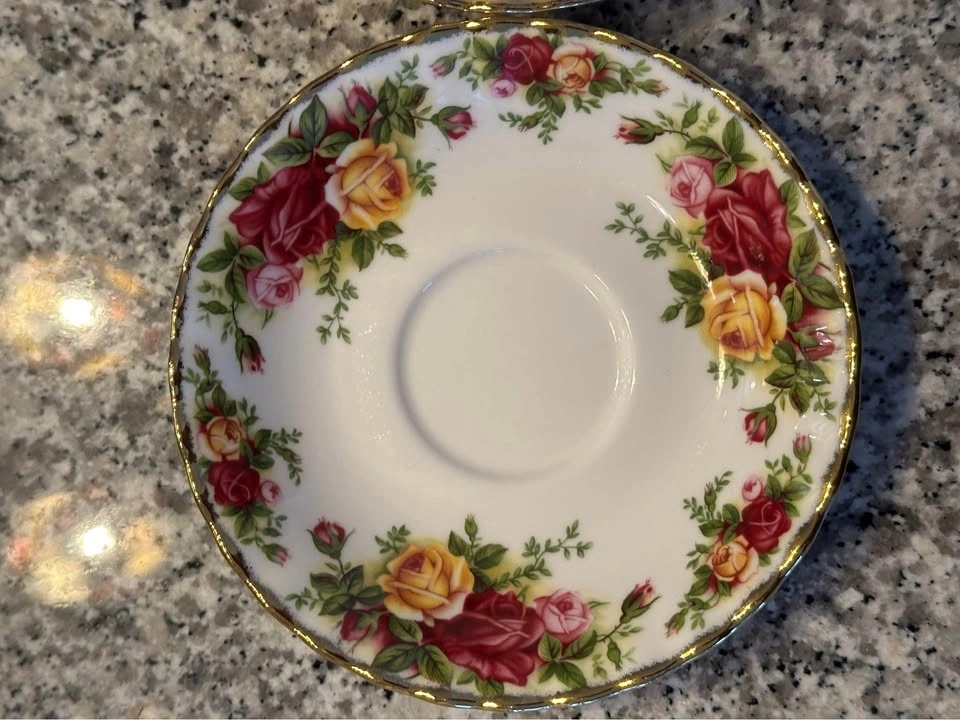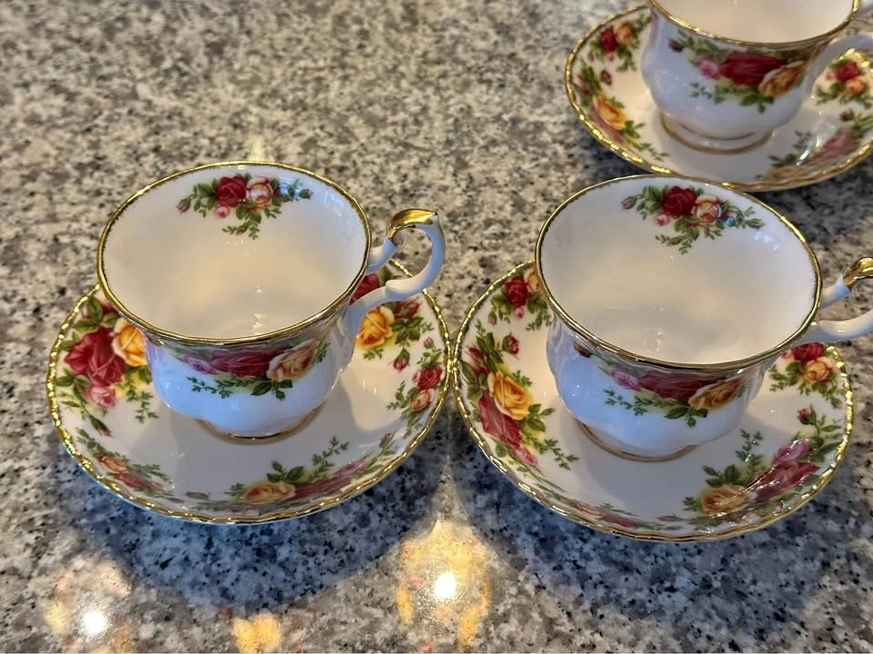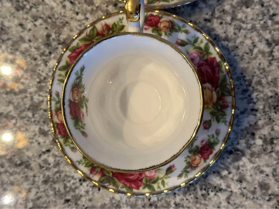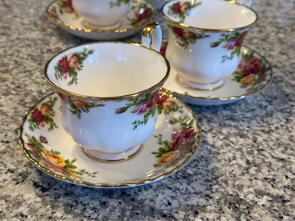 Price per set (1x Teacup & 1x Saucer). Currently four sets available. All four sets together are $150. The best-selling dinnerware pattern in the world. Decorated with the Old Country Roses signature motif of burgundy, pink and yellow roses. Accented with lustrous gold banding. Fine Bone China. Teacup is 6.5 ounces. Pick up near 777 Bay St only.