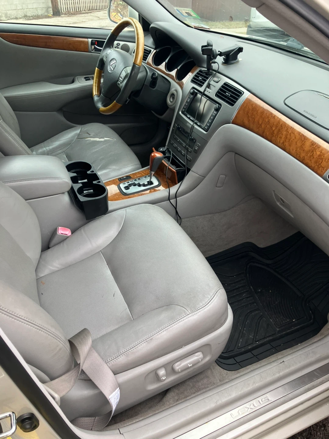 This is a 2006 Lexus ES 330 sedan. It's a light beige exterior with a gray leather interior. The car has a sunroof and wood trim accents. It comes with a navigation system and automatic transmission.