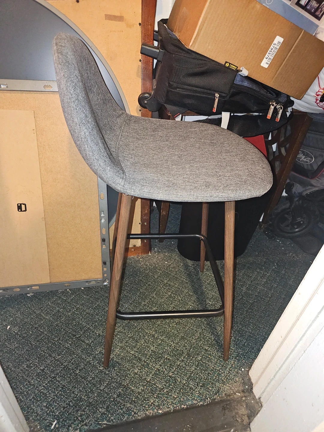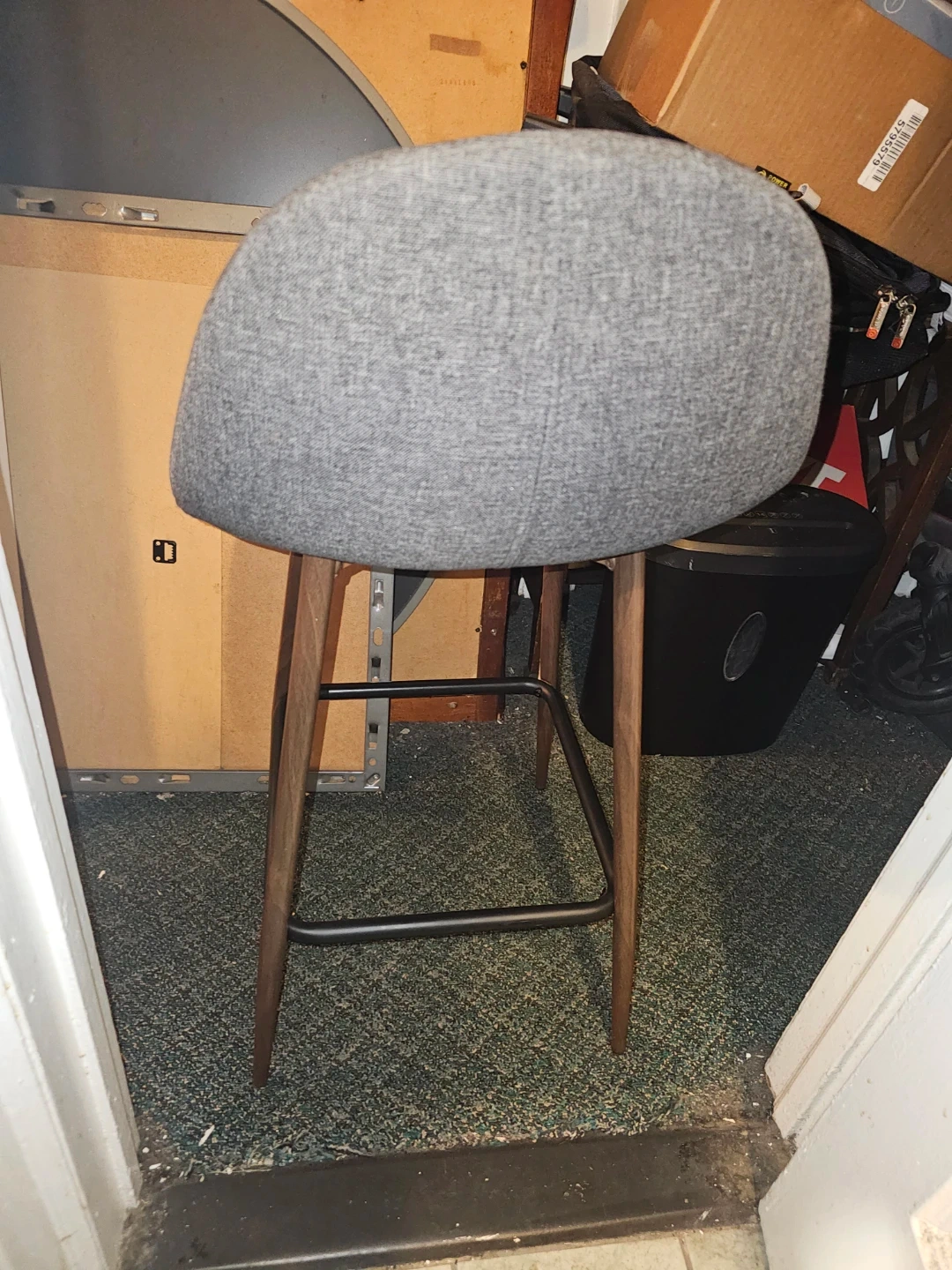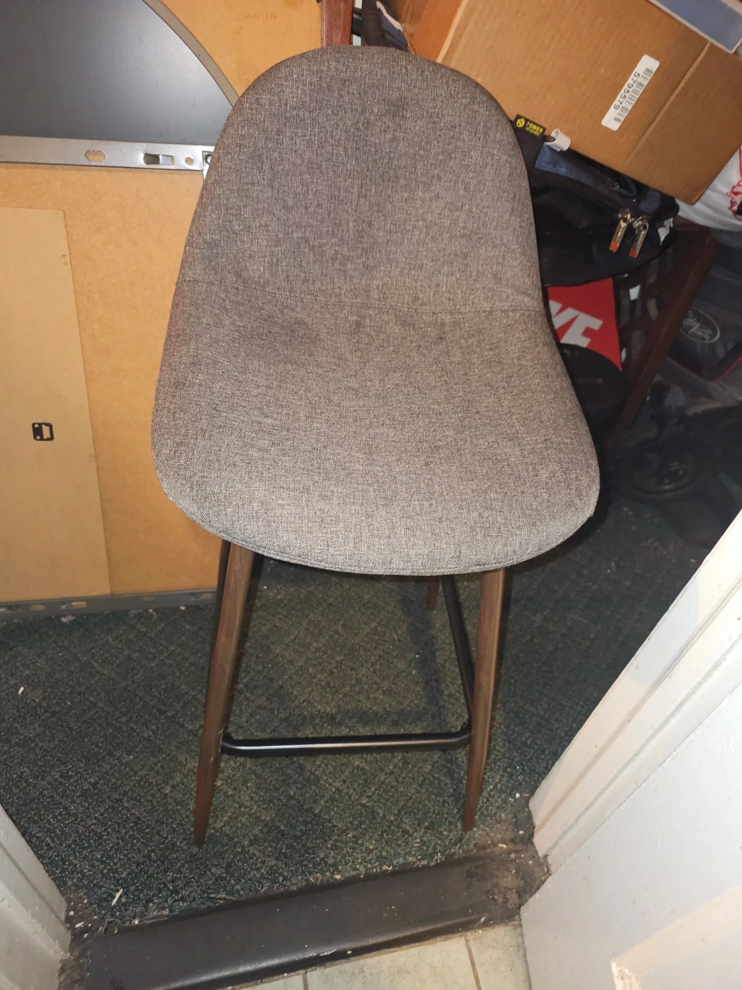 Gray Upholstered Bar Stool with Wood Legs