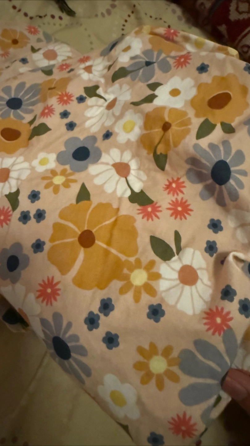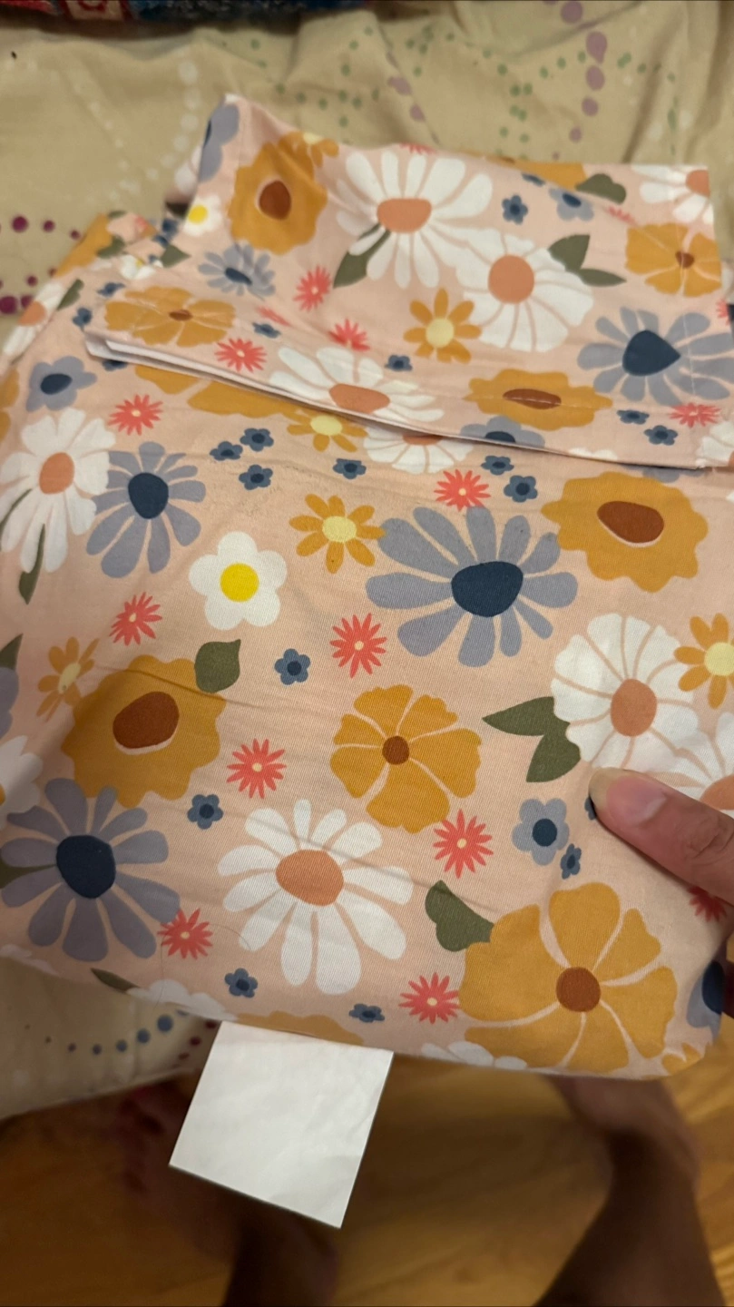 I'm selling a floral print fitted and flat sheet set, twin size, which comes in a cute storage case! The case has a velcro closure. Used only once, selling cause I’m getting a queen bed.