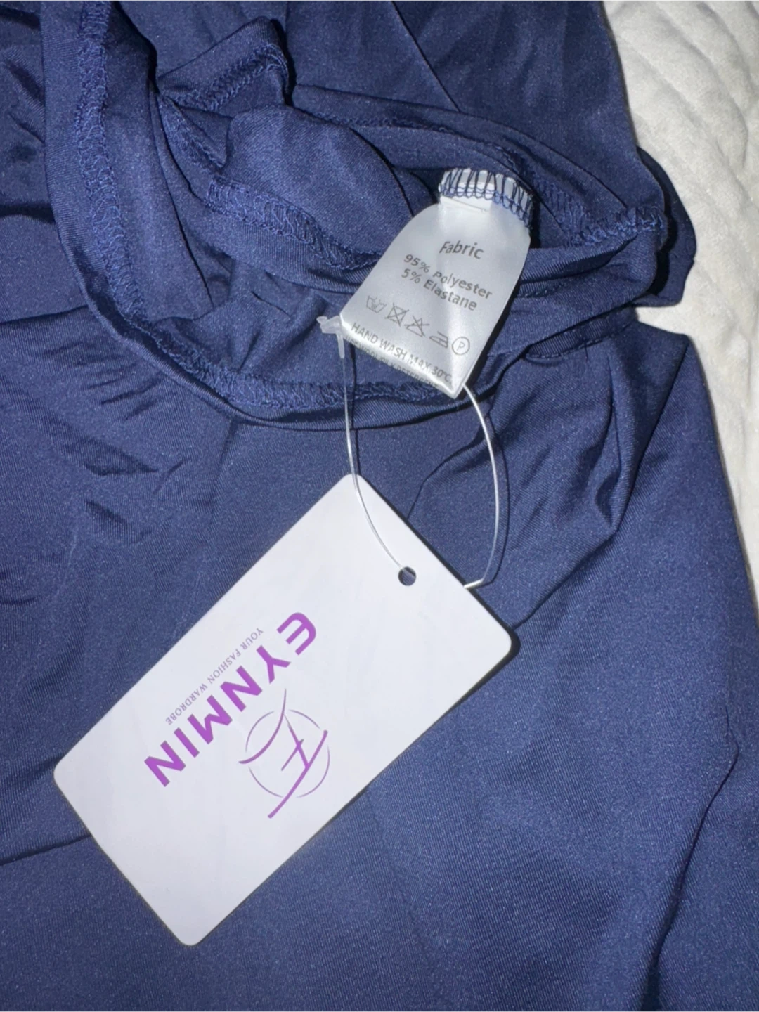 The EYNMIN Navy Blue Knit Ruched Long Evening Dress in size S features a square neck and strappy sleeves, making it a stylish and sophisticated choice for formal occasions such as weddings, proms, and parties. The dress is made from a comfortable and stretchy polyester and elastane blend, with ruched accents adding a touch of elegance. Its long length and classic theme make it perfect for the summer, fall, and spring seasons. Hand wash only to maintain its quality, this dress embodies a timeless and chic style for any woman's wardrobe.