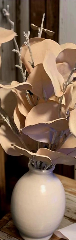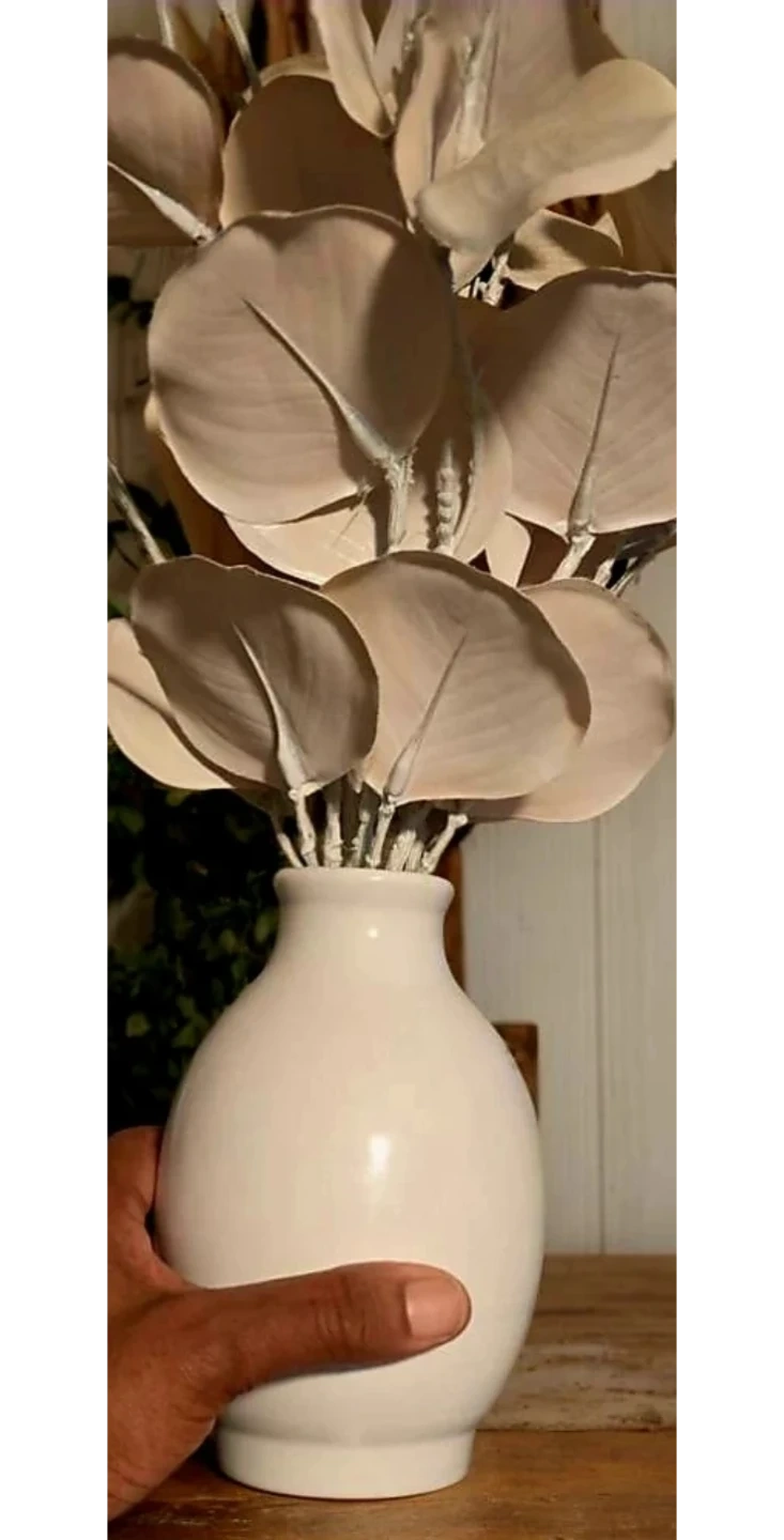 Faux Eucalyptus Stems with White Ceramic Vase