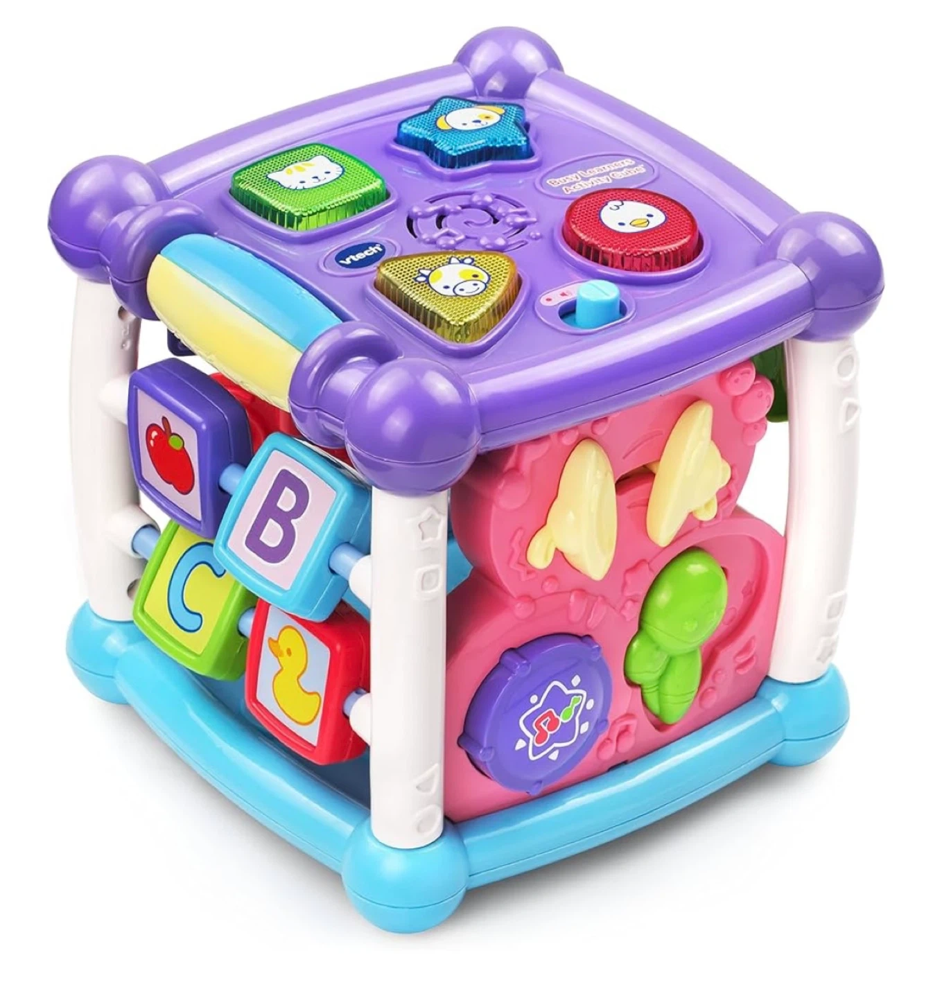 This is a VTech Busy Learners Activity Cube! It's a great toy for babies and toddlers. Lots of different activities to keep them entertained and learning. Recommended Age Range is 6 months to 3 years