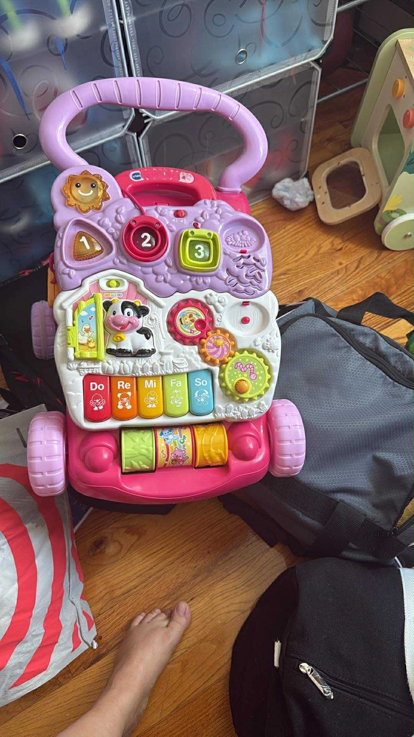 33This VTech Sit-to-Stand Learning Walker is perfect for little ones learning to walk! It has a variety of activities to keep them entertained, including piano keys, spinning gears, and light-up buttons. Great for developing motor skills and hand-eye coordination!