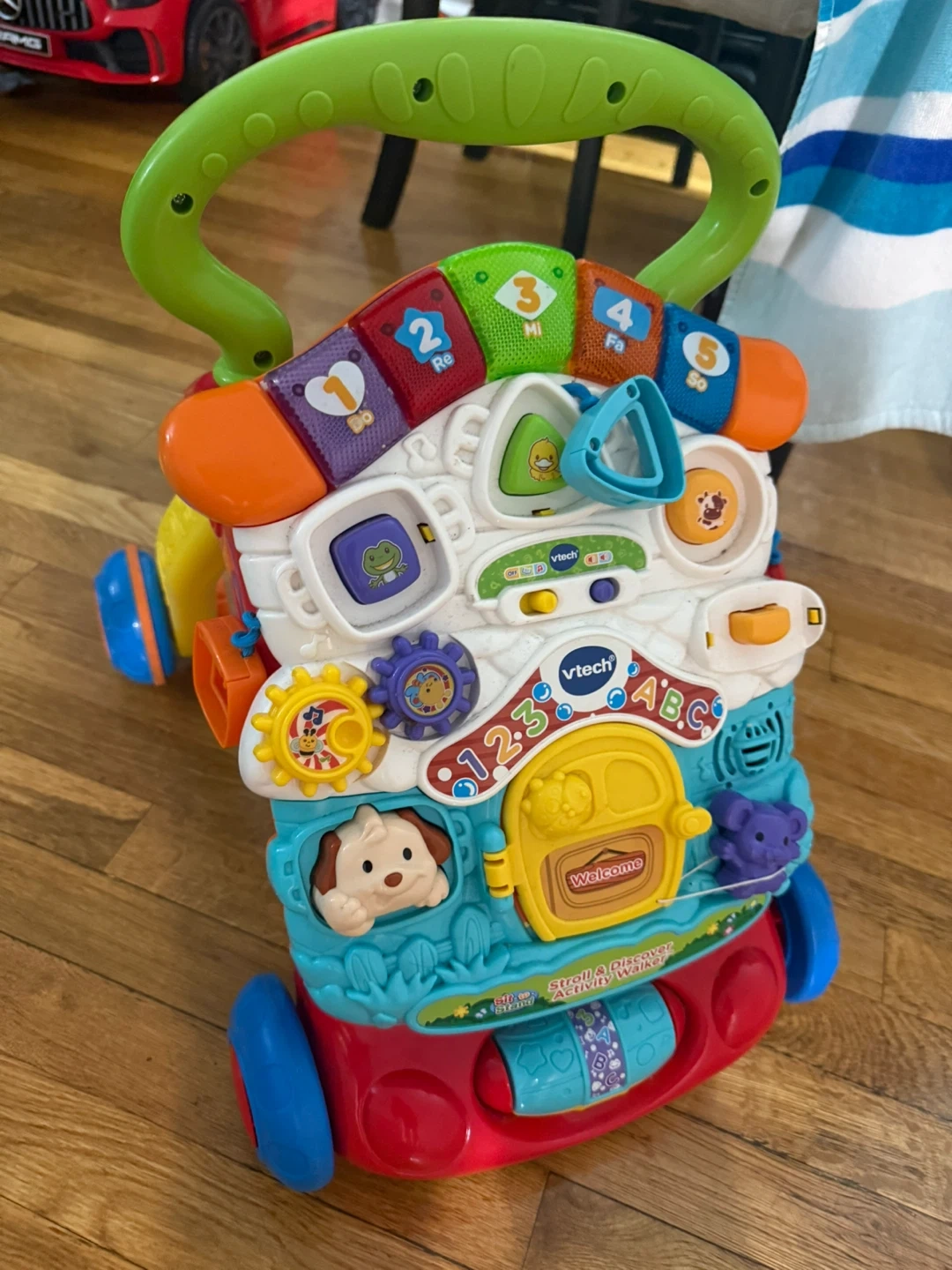 Selling a VTech Stroll & Discover Activity Walker! It's in great condition and ready for a new home. This walker is perfect for little ones learning to walk and explore. It features a variety of interactive elements to keep your child entertained and engaged. The walker is designed to help develop motor skills and hand-eye coordination