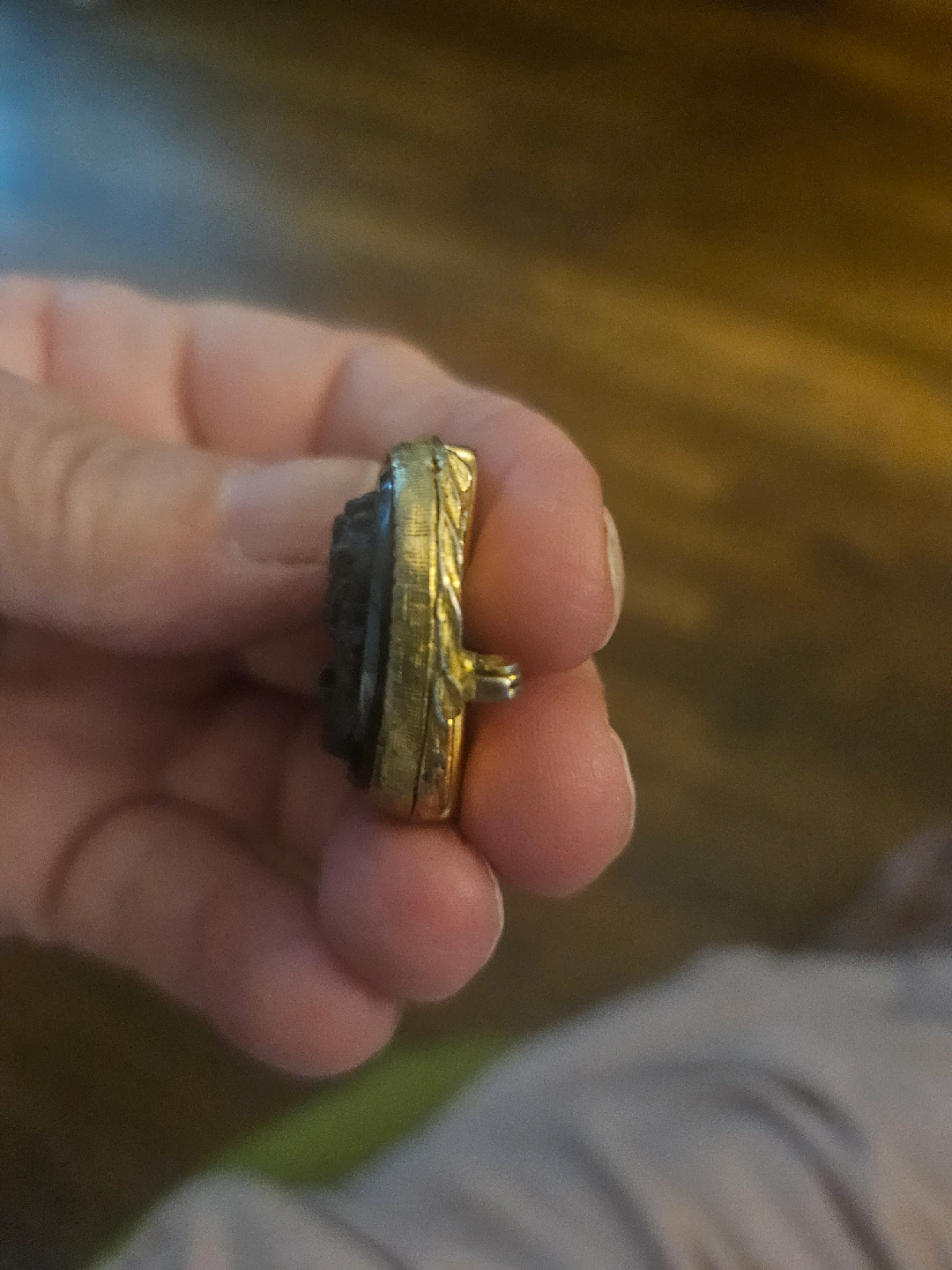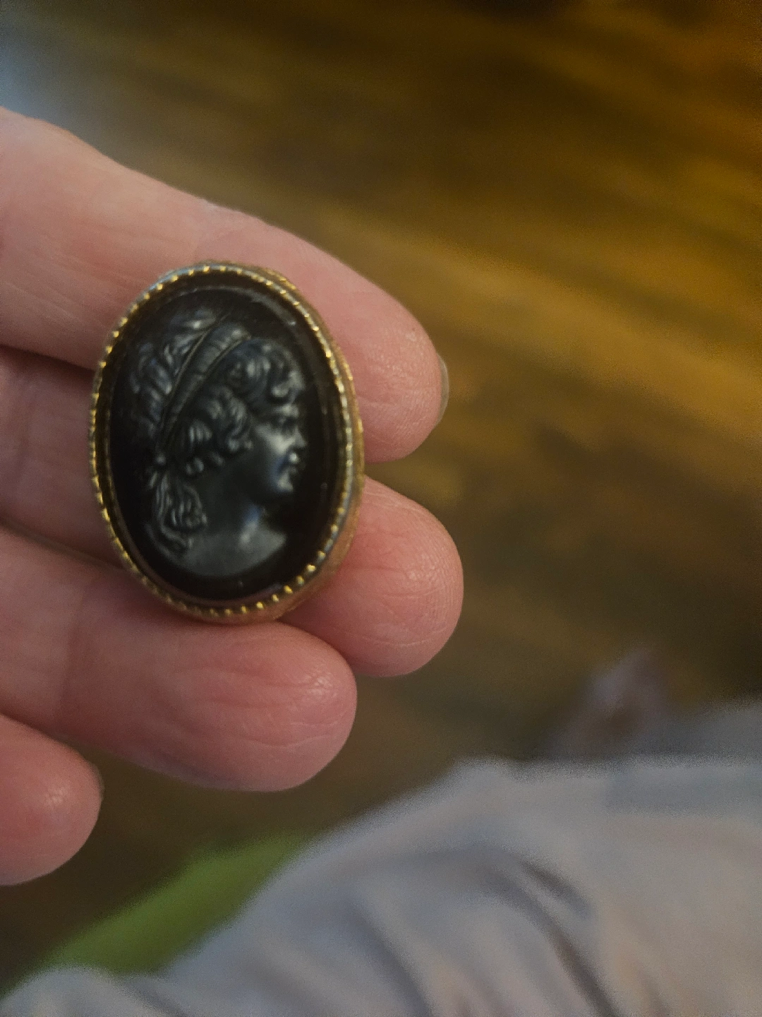 Show allVTG Cameo Avon Gold Tone Silhouette Greak Necklace