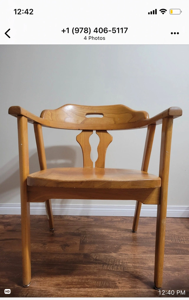 Add a touch of vintage charm to your space with this solid wood chaise bistro chair. Its sturdy construction and unique design make it a standout piece. This chair is in good condition, showing some signs of wear that add to its character. This chair isn't just a seat; it's a statement! And just so you know, if you're seeing this ad, the chair is still up for grabs!