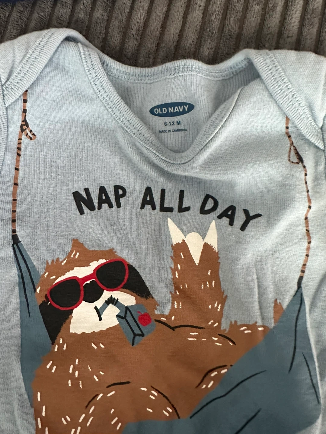 - Old Navy bodysuit (6-12M) with a cute sloth design