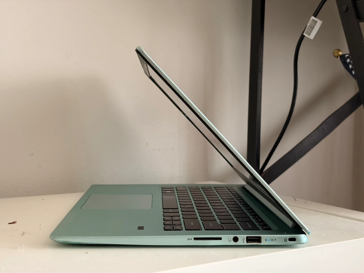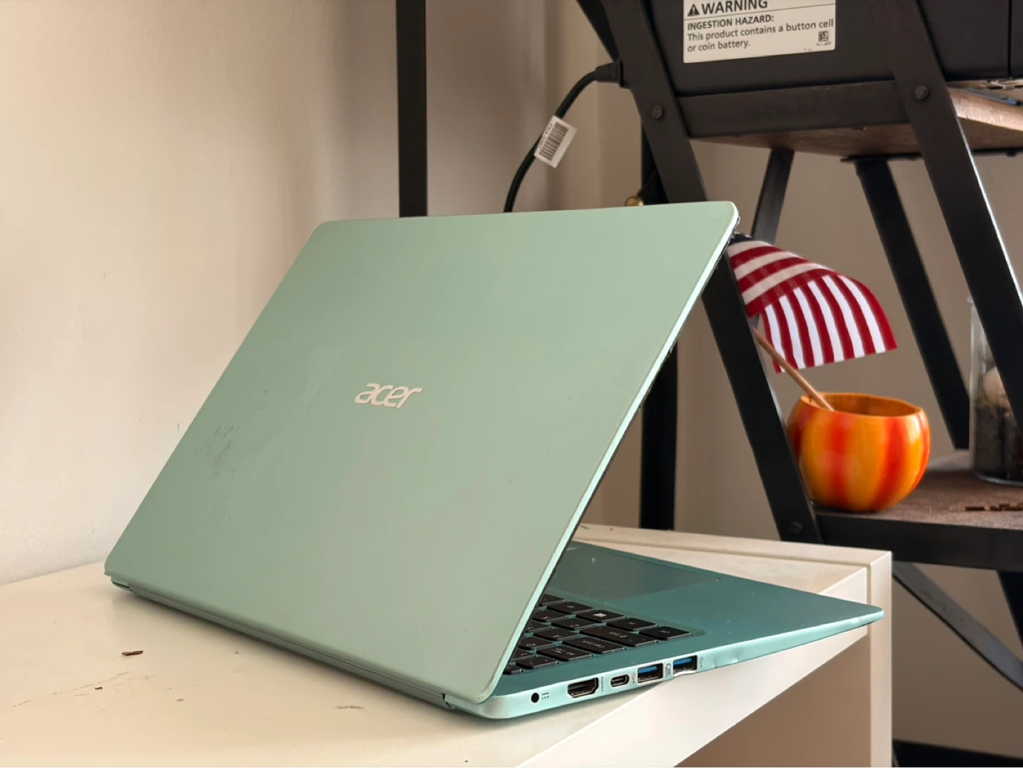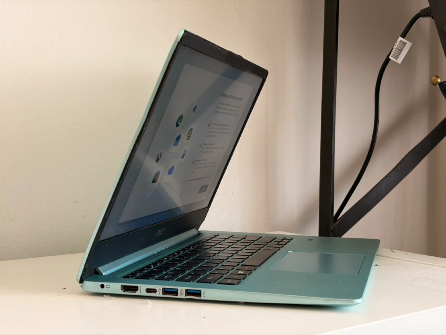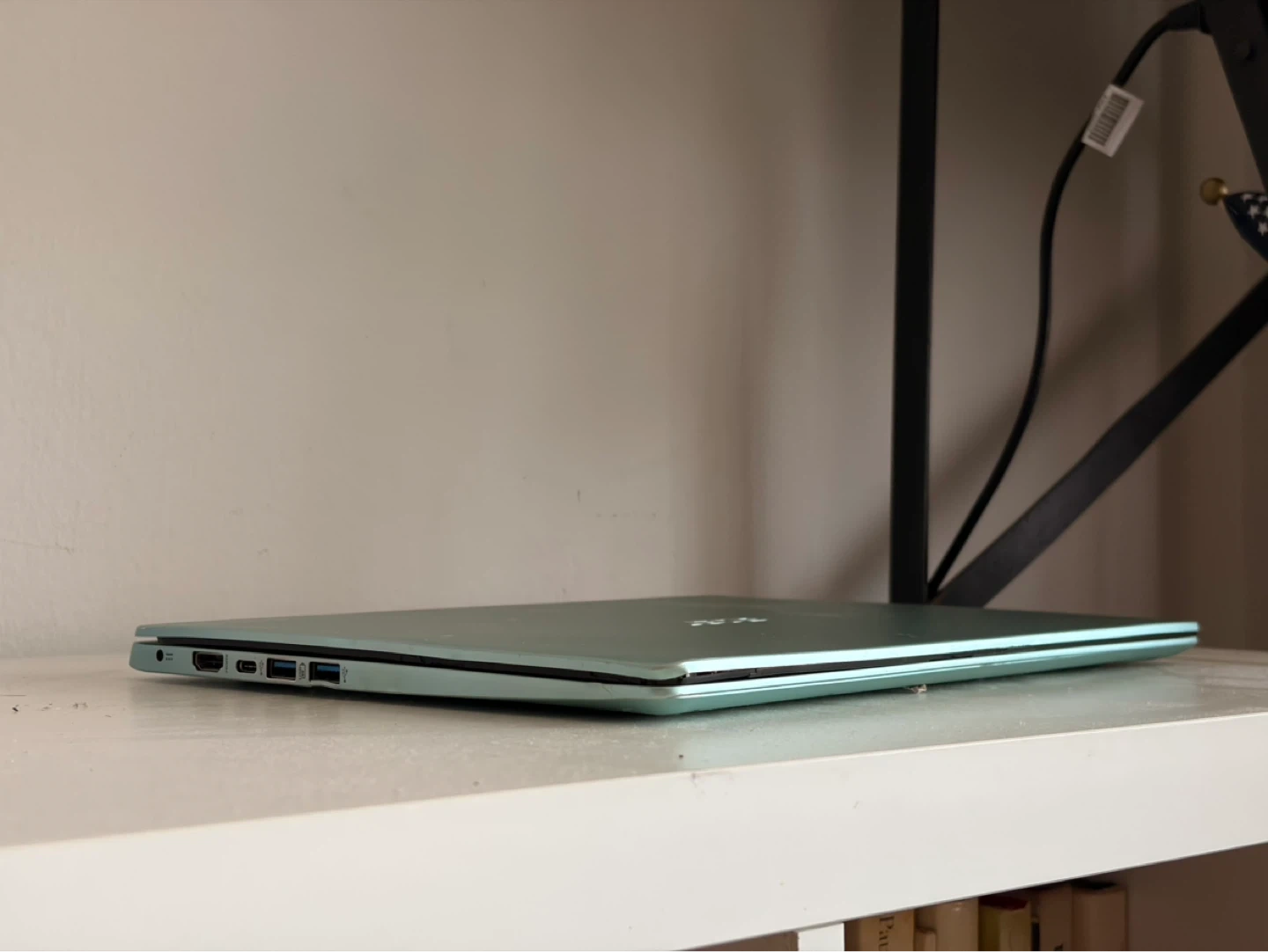 Acer Swift 3 laptop in a light blue color. It's slim and portable. Includes multiple USB-C and HDMI ports.