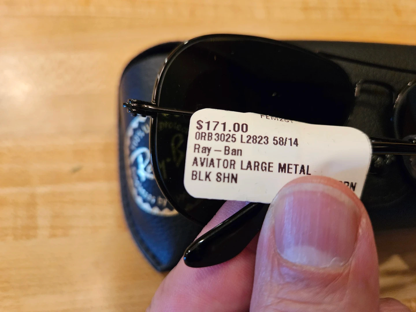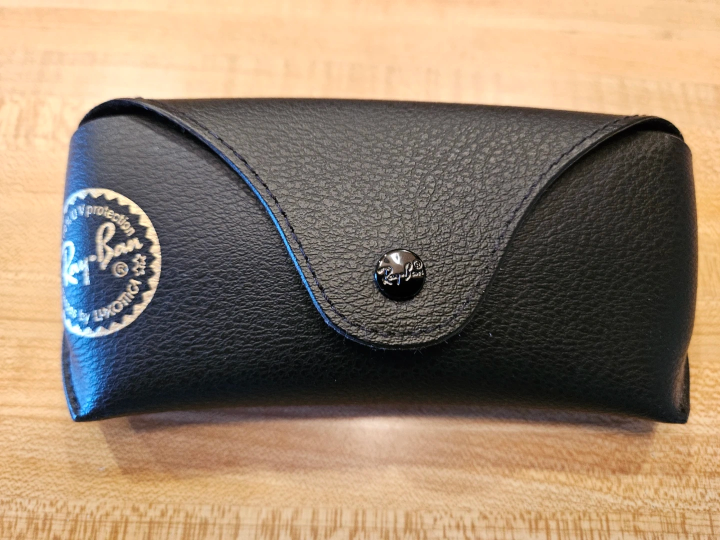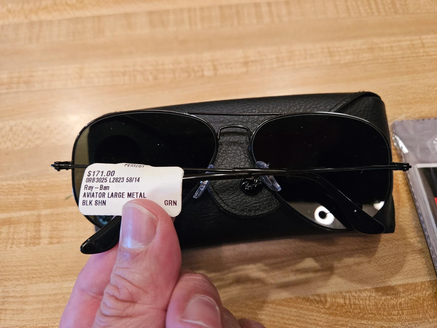 Selling a pair of Ray-Ban Aviator Large Metal sunglasses in black. These classic shades feature G-15 lenses and offer 100% UV protection. The tag shows they were originally $171. Comes with the case and cleaning cloth!