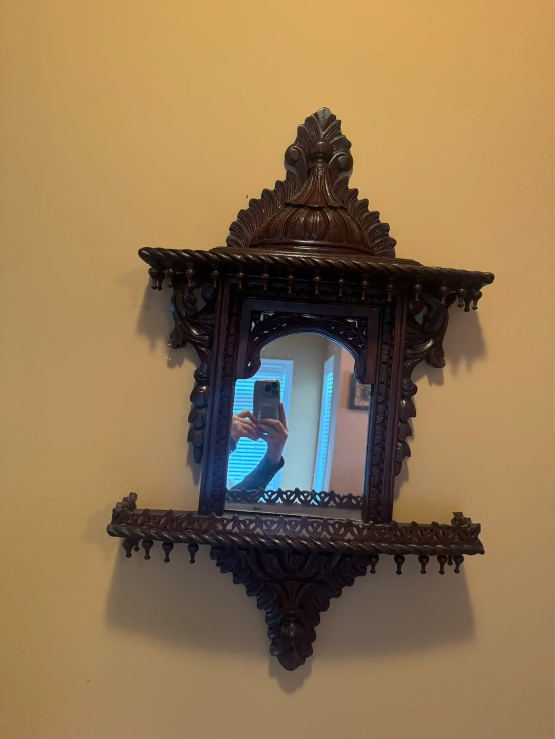 Ornate Carved Wood Wall Mirror Shelf