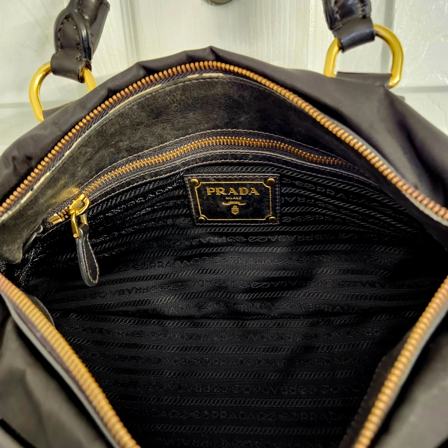 Prada Black Nylon Shoulder Bag with Gold Hardware
