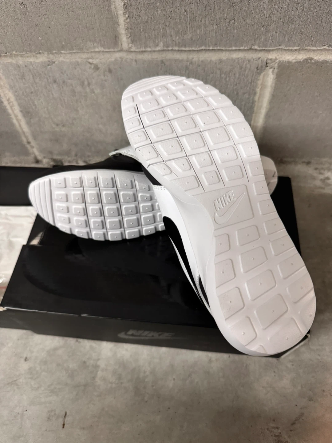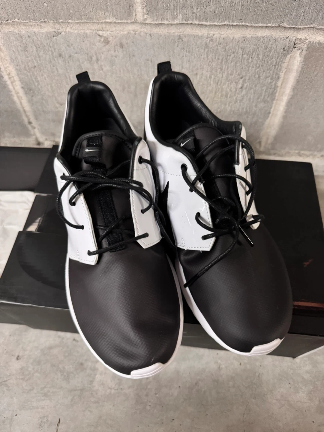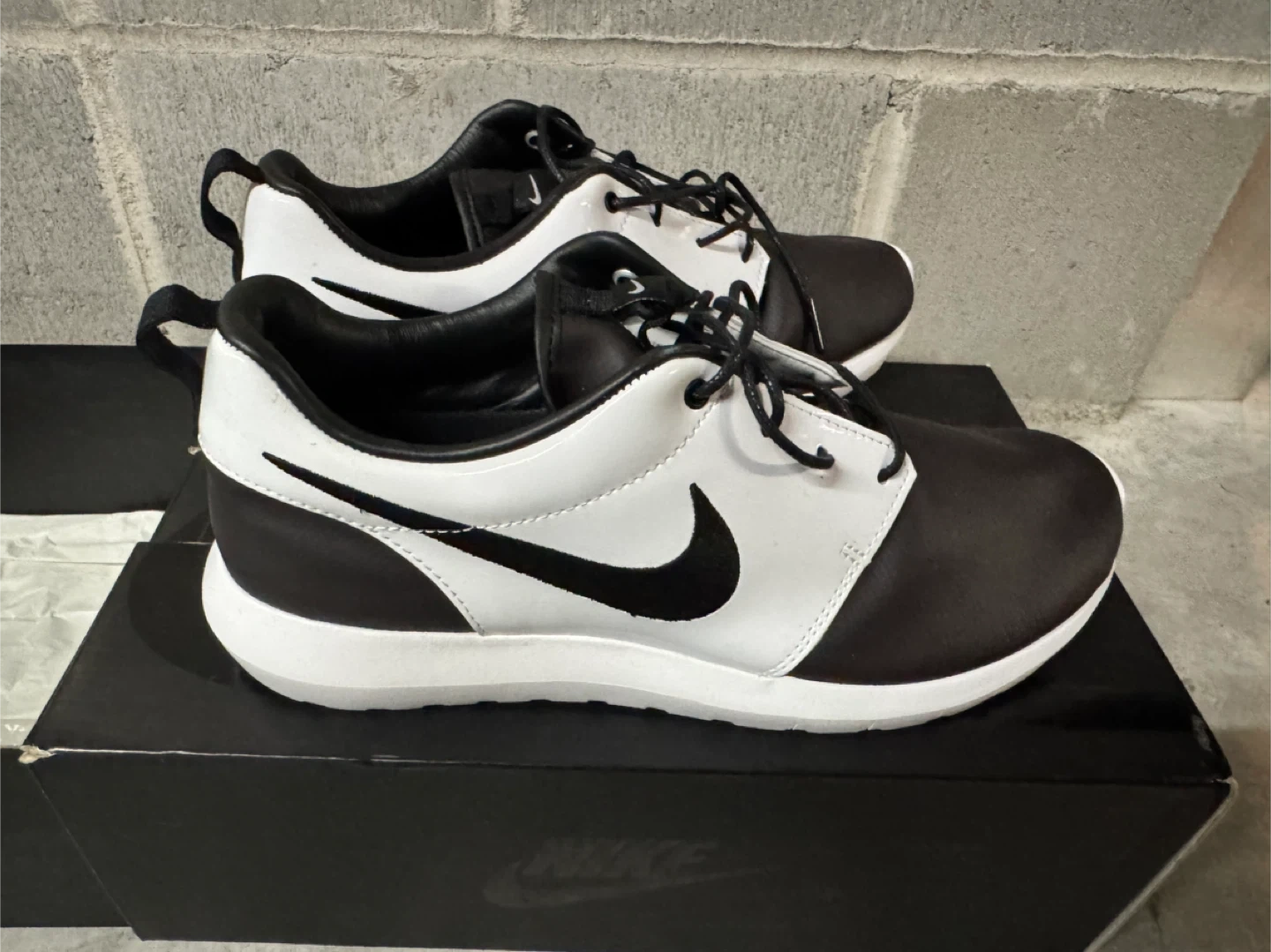 Classic Nike Roshe One sneakers in a black and white colourway. These shoes offer a comfortable and stylish option for everyday wear. They're built with a lightweight design and a flexible sole for a great feel. Comes with original box.