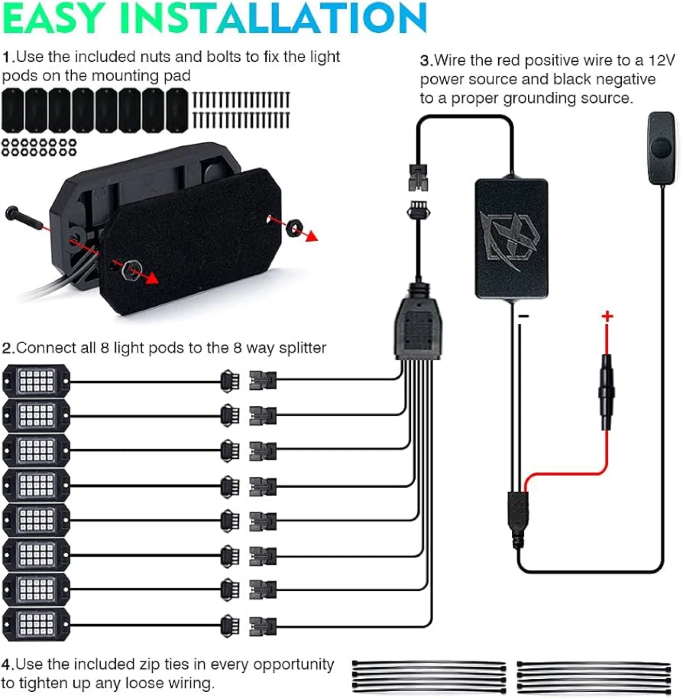 Xprite 8 Pods Rock Lights Kit - Underglow - New/open box