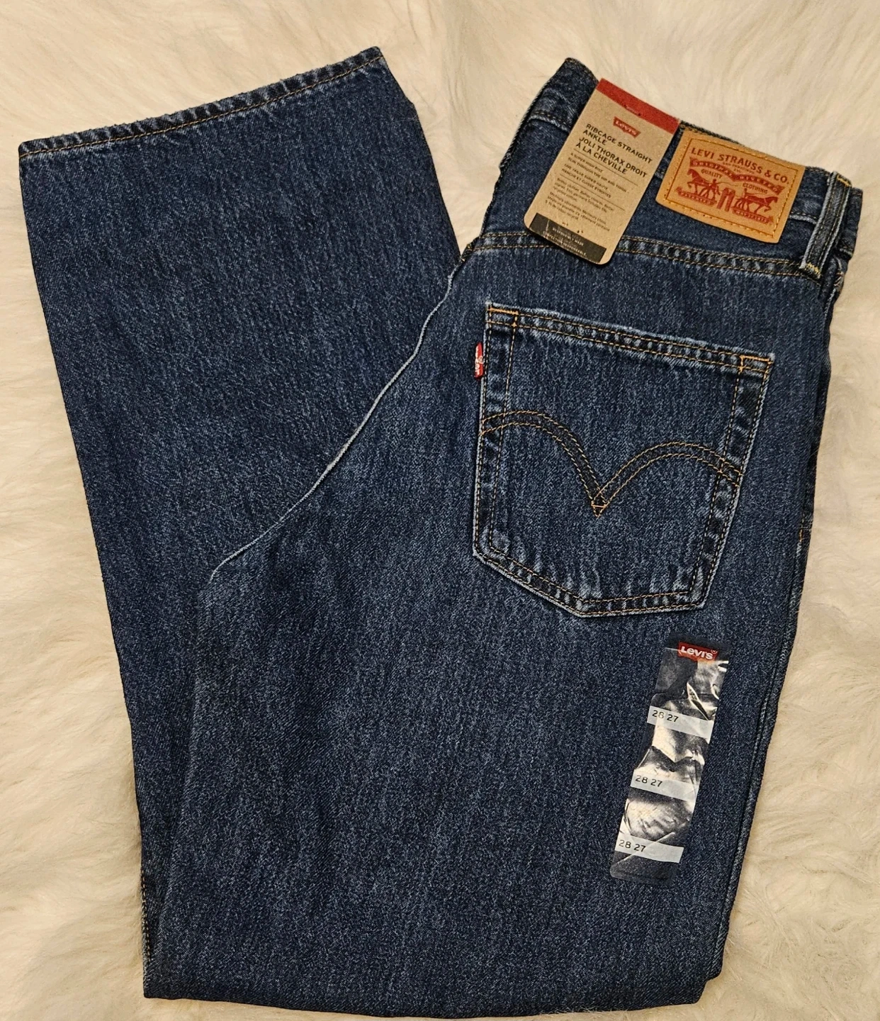 Dark Wash- Ribcage Straight Ankle. A super high rise, slim through the hip and thigh 28x27