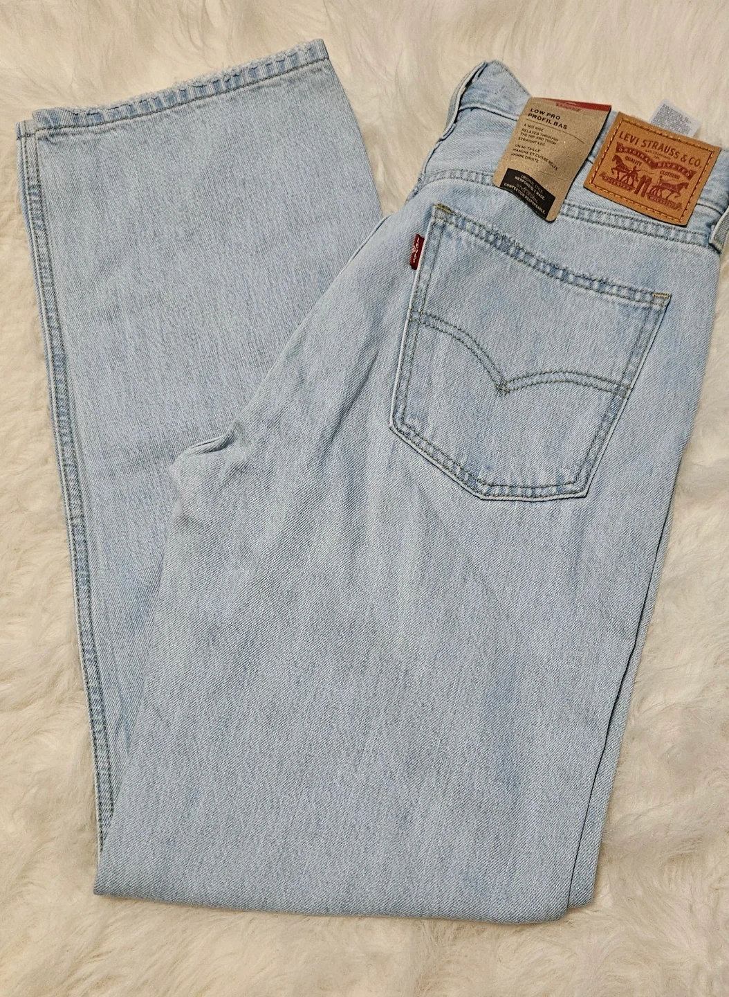 Light Wash- Low Pro, A mid-rise, Relaxed through the hip and thigh, Straight leg, size 28