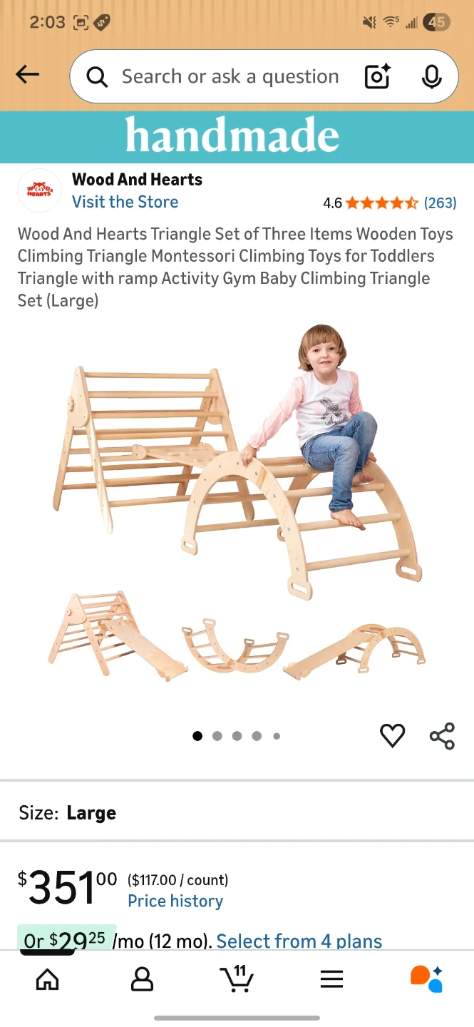 Selling our beautiful Montessori-style climbing set from Wood&Hearts (large size). Purchased new in January 2023 for $380.