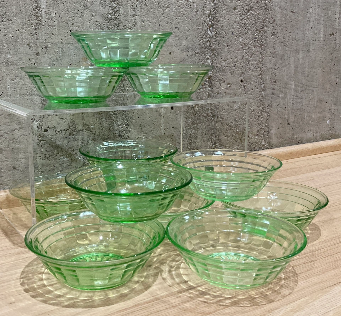 VTG Anchor Hocking Block Optic Bowls Green Depression Glass