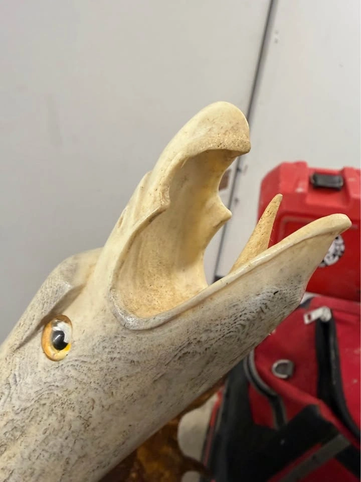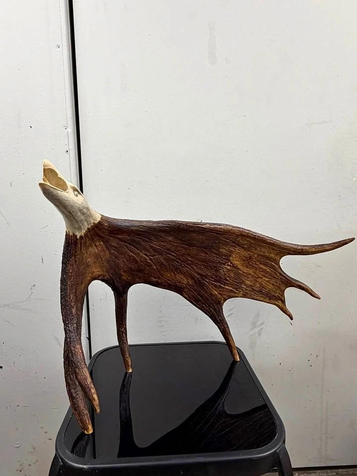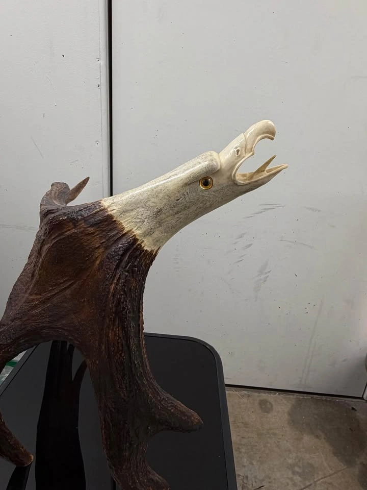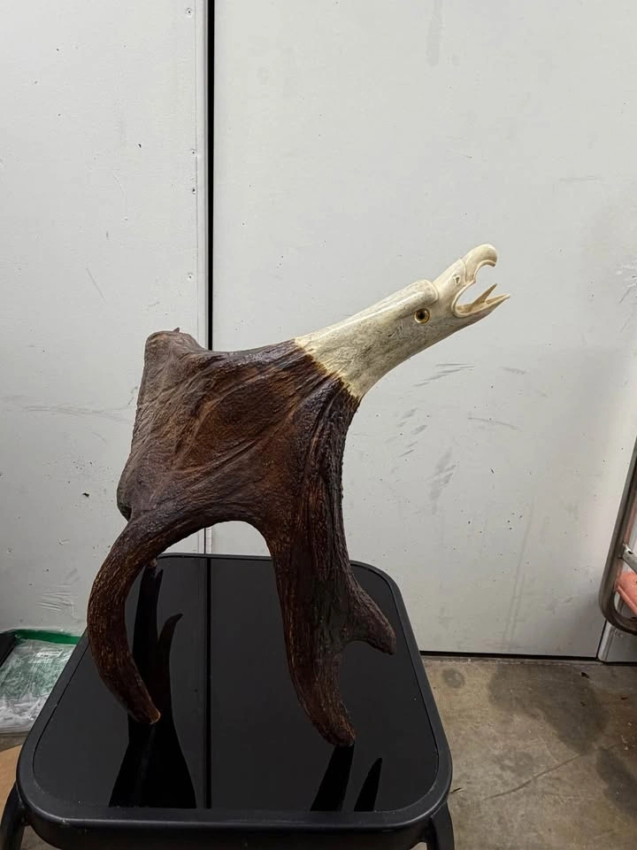 Unique handcrafted sculpture made from real antler, featuring a detailed eagle head design. Let me know if you're interested!