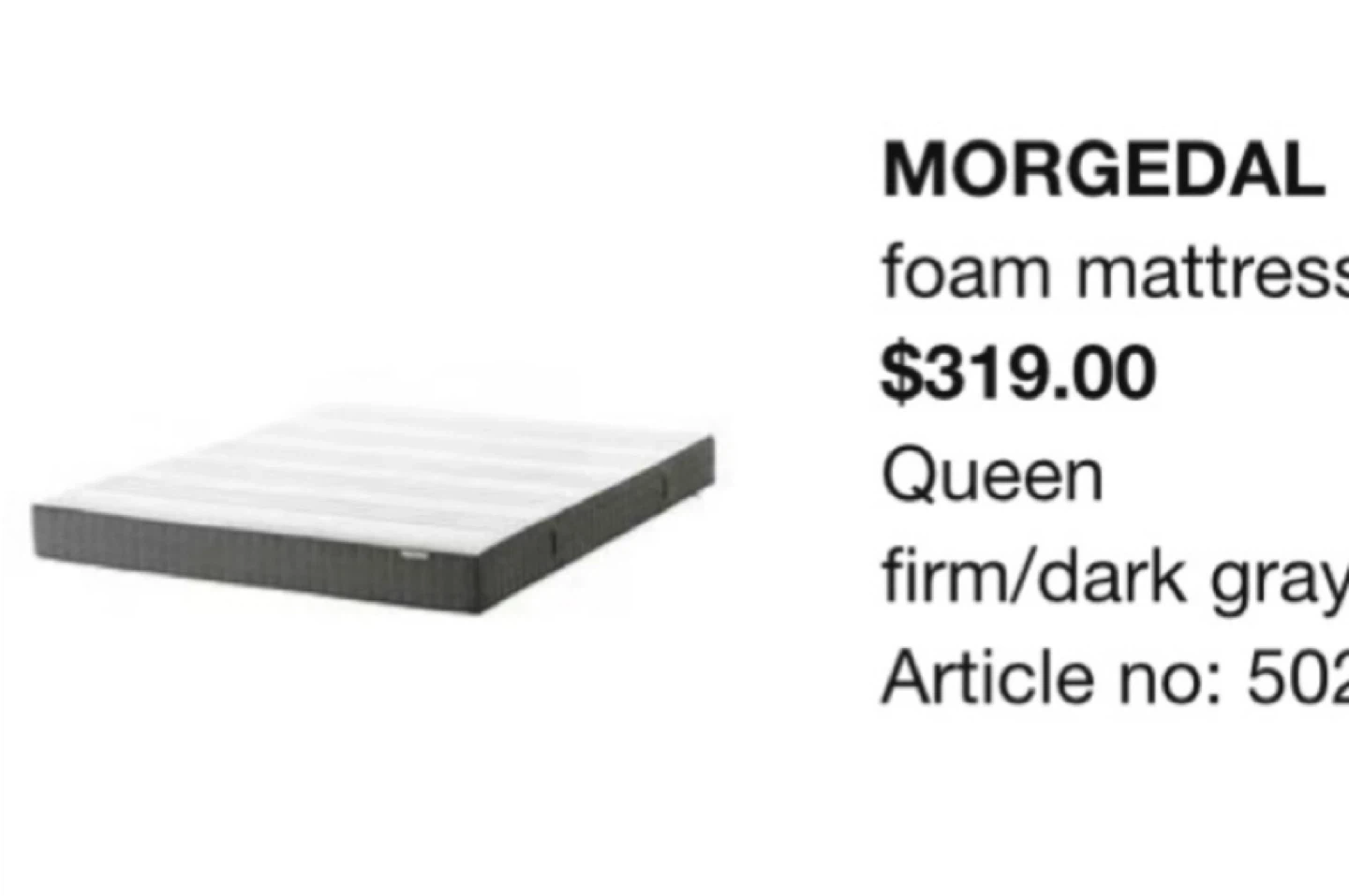 Selling an IKEA foam mattress. It's a queen size with a firm and dark grey finish. This mattress is designed for comfort and support, perfect for any bedroom.