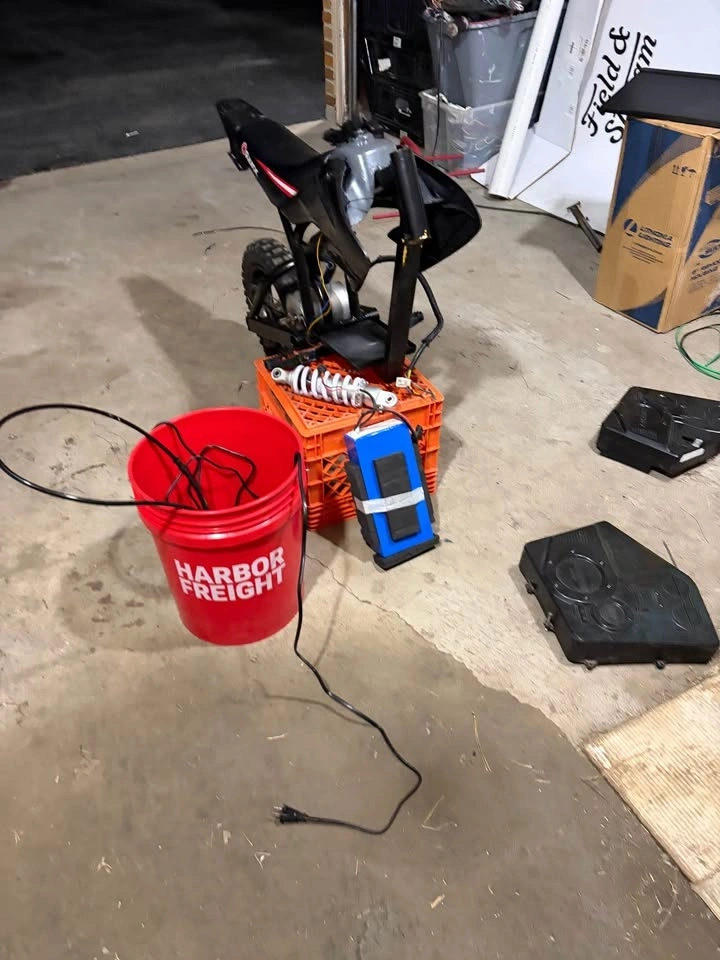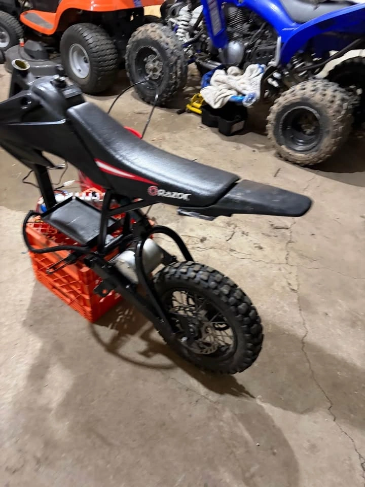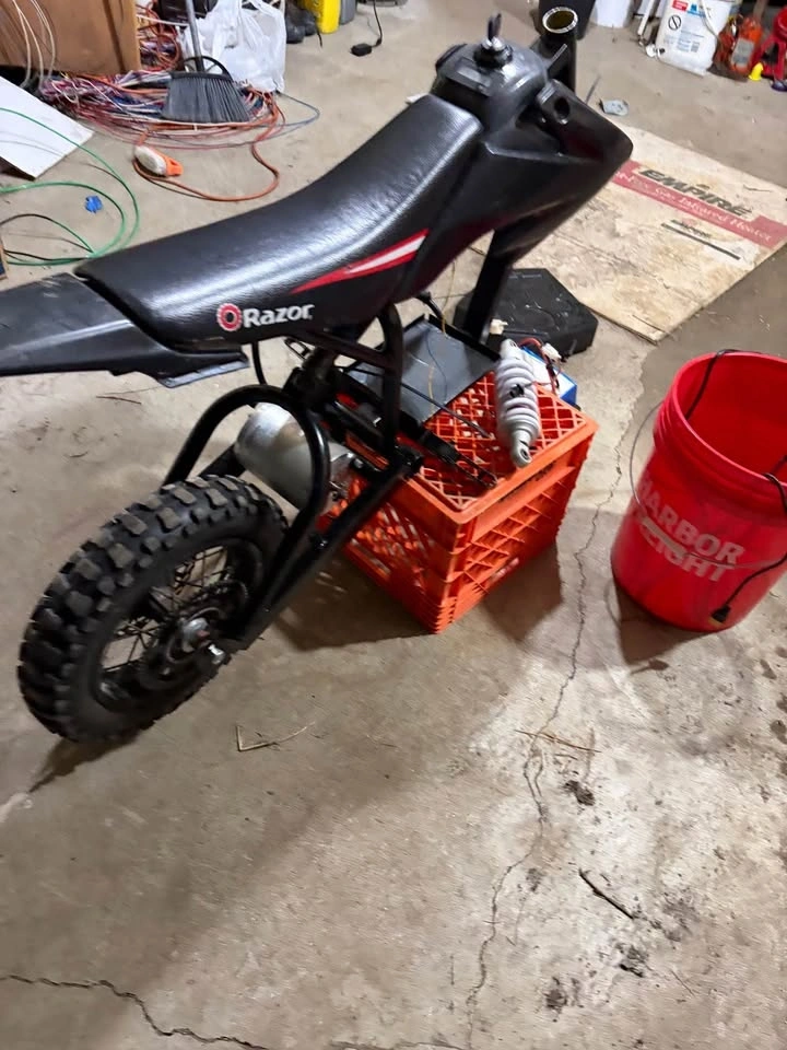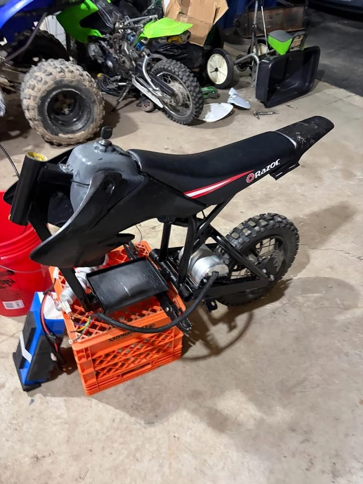 Selling parts from a modded Razor mx650 dirt e-bike . I paid someone to do some work on it, but they didn't finish and took some parts. Trying to get some money back. Includes a 48v battery and a 72v motor, along with a bunch of other parts and two wheels.