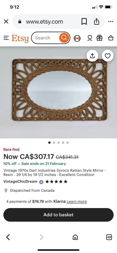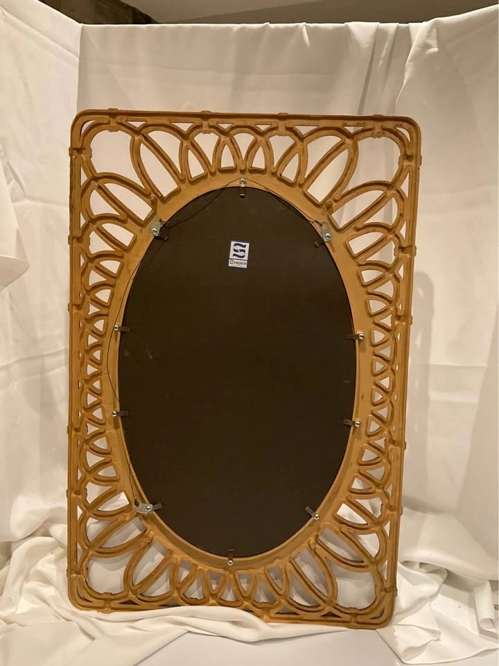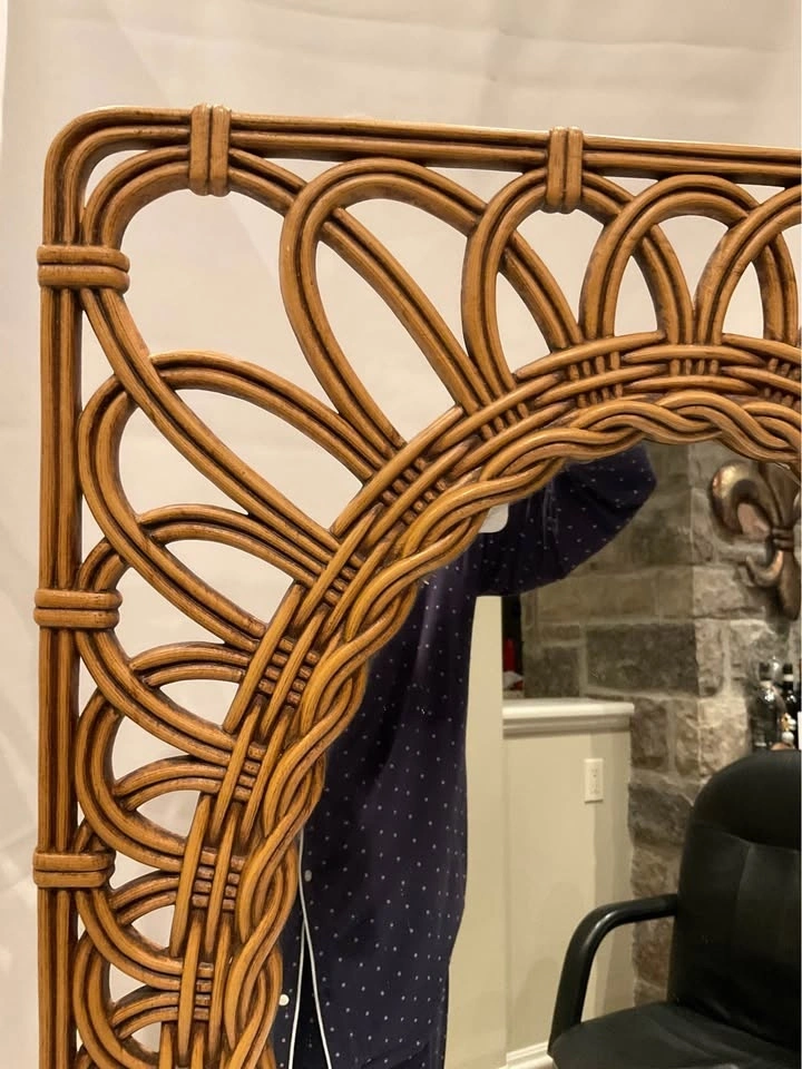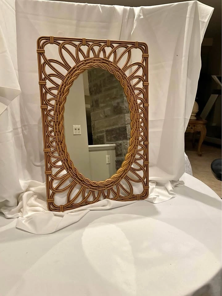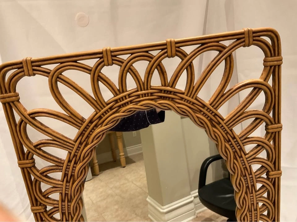 Beautiful Vintage Syroco Faux Bamboo Mirror. Stunning detailed resin frame, 29"x19". 1970's. Pristine condition. Smoke & Pet Free Home. Cash Only - Richmond Hill / Bathurst & King Rd.