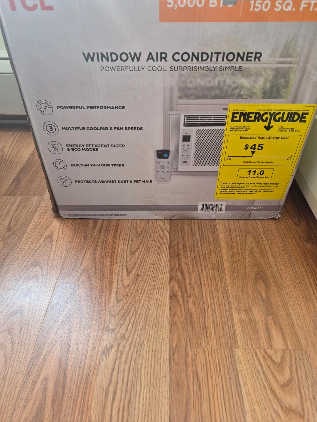 This TCL window air conditioner is powerfully cool and surprisingly simple. It's designed for rooms up to 150 sq. ft. It offers multiple cooling & fan speeds, energy efficient sleep & eco modes, and a built-in 24-hour timer. Protects against dust & pet hair.