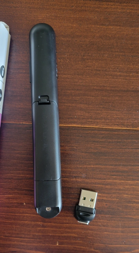 Selling a wireless presenter. It comes with its original box and instruction manual. This presenter is perfect for controlling presentations with ease, featuring intuitive buttons and a sleek design.