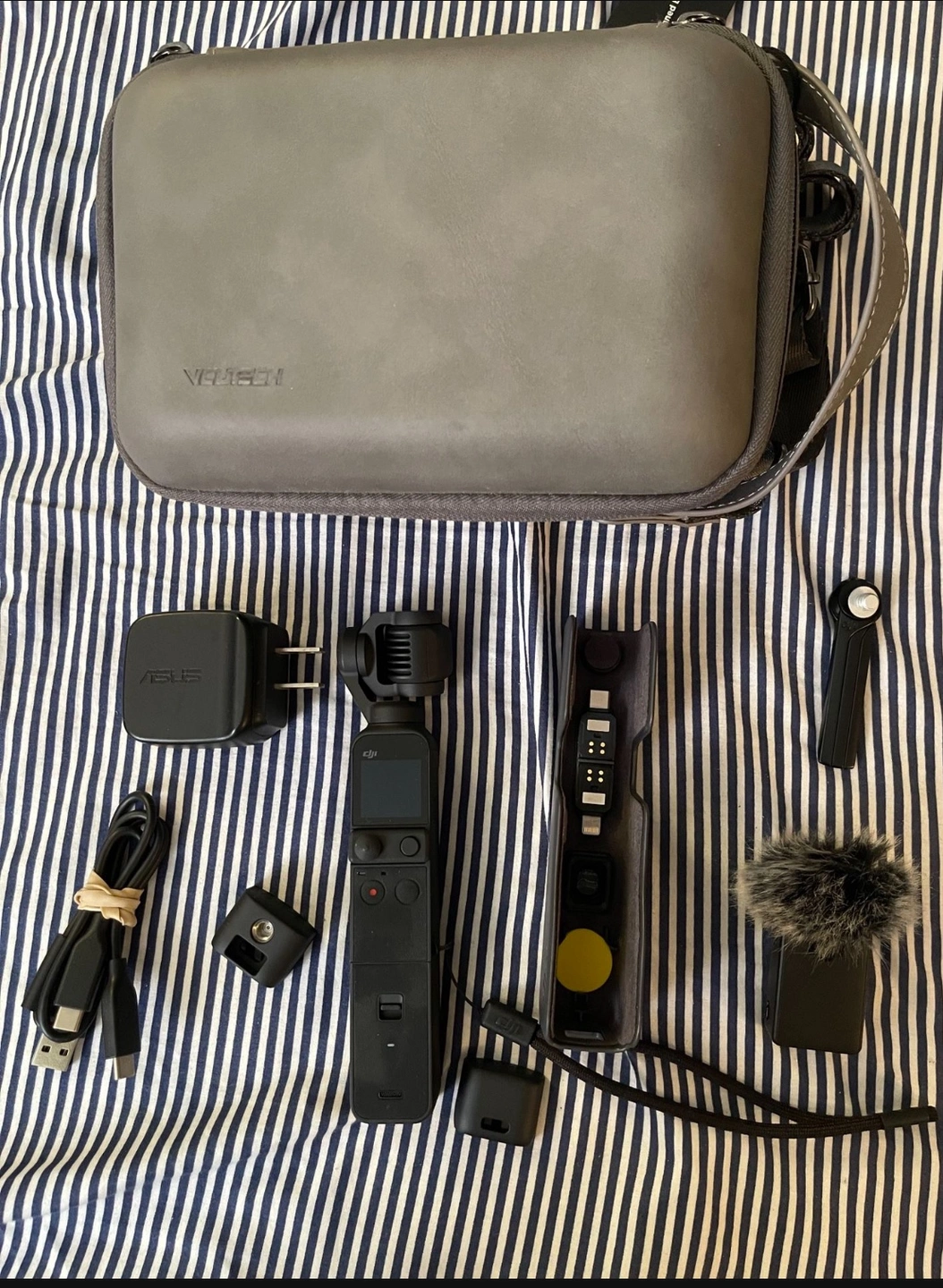 Includes everything pictured, including the original box, carrying case, charging adapter, microphone, and accessories. Also included custom hard case for storing everything, has shoulder strap for transporting.